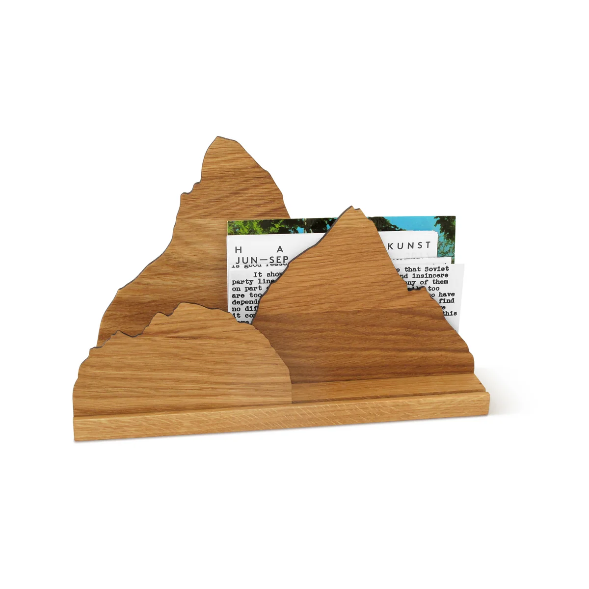 Des notes, des dépliants ou des lettres entre trois montagnes, c'est-à-dire le Zettelherberge . Les montagnes design en placage de noyer teinté servent de rangement pour des morceaux de papier qui, autrement, s'envoleraient n'importe où : comme un bel accroche-regard sur le bureau, dans le couloir ou sur l'étagère de la cuisine - juste là où vous aimez accumuler des choses. Le collecteur de billets a été conçu Zettelherberge par les designers Matthias Lehr et Myong ae Kyong