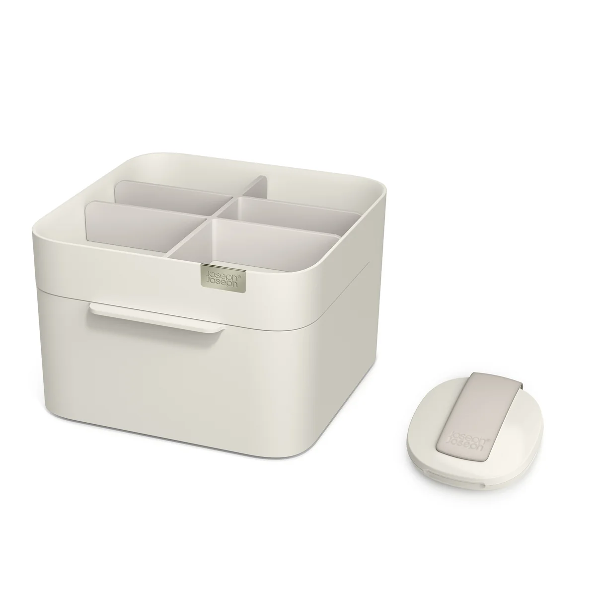 Avec le Make Me up de Joseph Joseph , votre rituel de beauté quotidien devient une expérience véritablement organisée et élégante. L'organisateur cosmétique à tiroir offre des compartiments profonds, parfaits pour les pinceaux, le mascara et les crayons eye-liner, ainsi que des compartiments peu profonds pour les petits trésors comme les rouges à lèvres, les fards à joues et les ombres à paupières. Le tiroir lui-même est équipé d'une fermeture magnétique qui permet de ranger en toute sécurité les cotons-tiges, les bâtonnets d'ouate et les éponges à maquillage. L'emblème chromé ajoute une touche d'élégance à cet organiseur et, cerise sur le gâteau, il se démonte facilement pour être nettoyé.