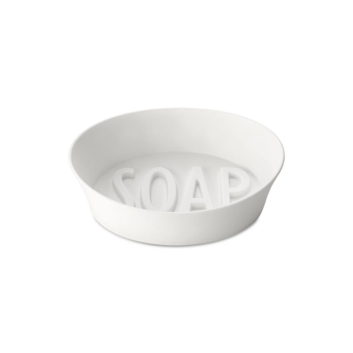 Avec la déclaration SOAP, le porte-savon éponyme de Koziol montre exactement ce pour quoi il a été créé. Le porte-savon décoratif en matériau recyclé est un accessoire de salle de bains respectueux de l'environnement et s'intègre discrètement sur le bord du lavabo ou de l'évier. Les lettres en relief ne sont pas seulement décoratives. Il permet également au pain de savon de ne pas rester dans l'eau et d'être utilisé plus longtemps.