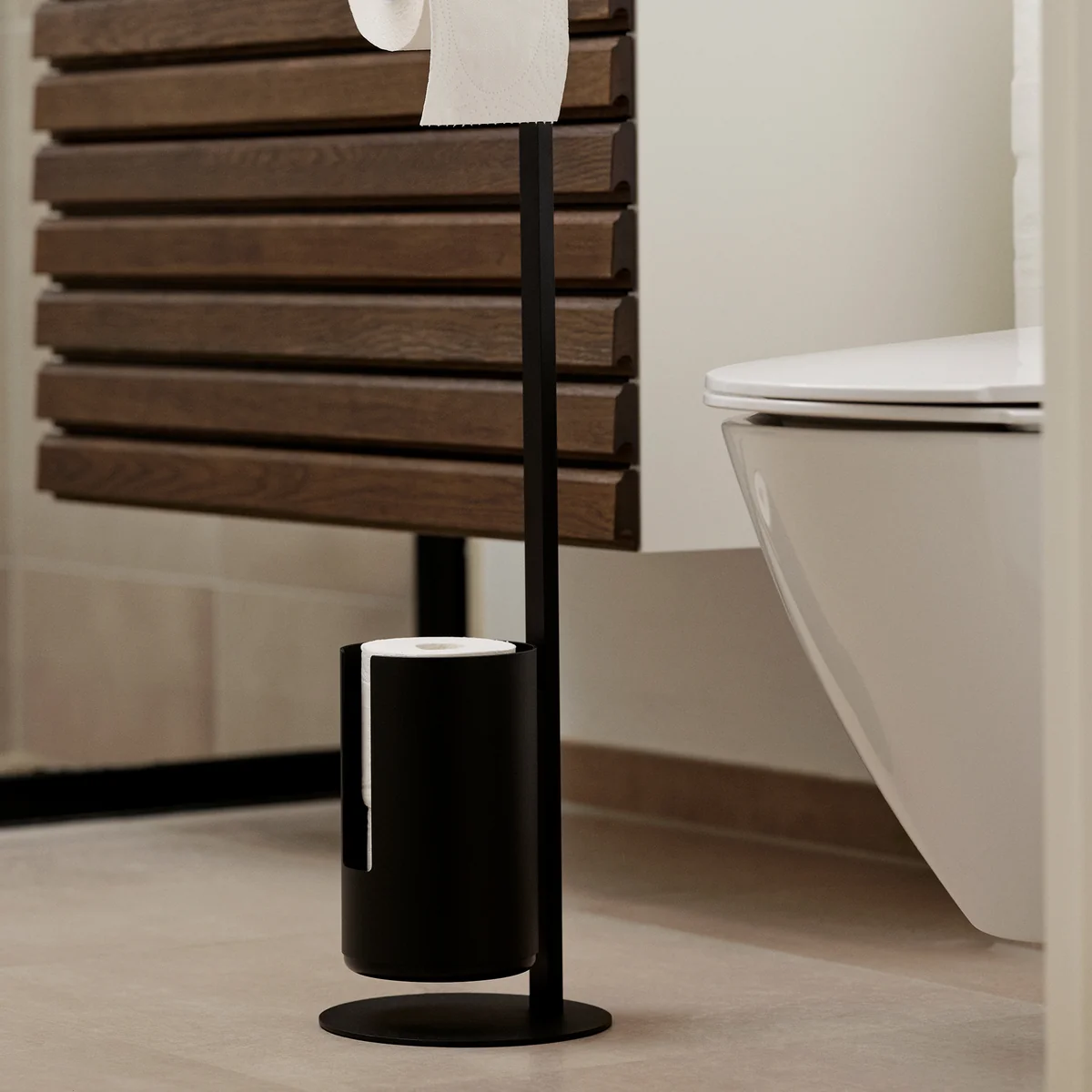 Le design du support de papier toilette Freisteh Rim de Zone Denmark est vraiment innovant. Ce support de papier toilette offre un moyen pratique de ranger le papier toilette sans avoir à percer un mur. Il peut être facilement déplacé pour être nettoyé ou adapté aux conditions de votre salle de bains.