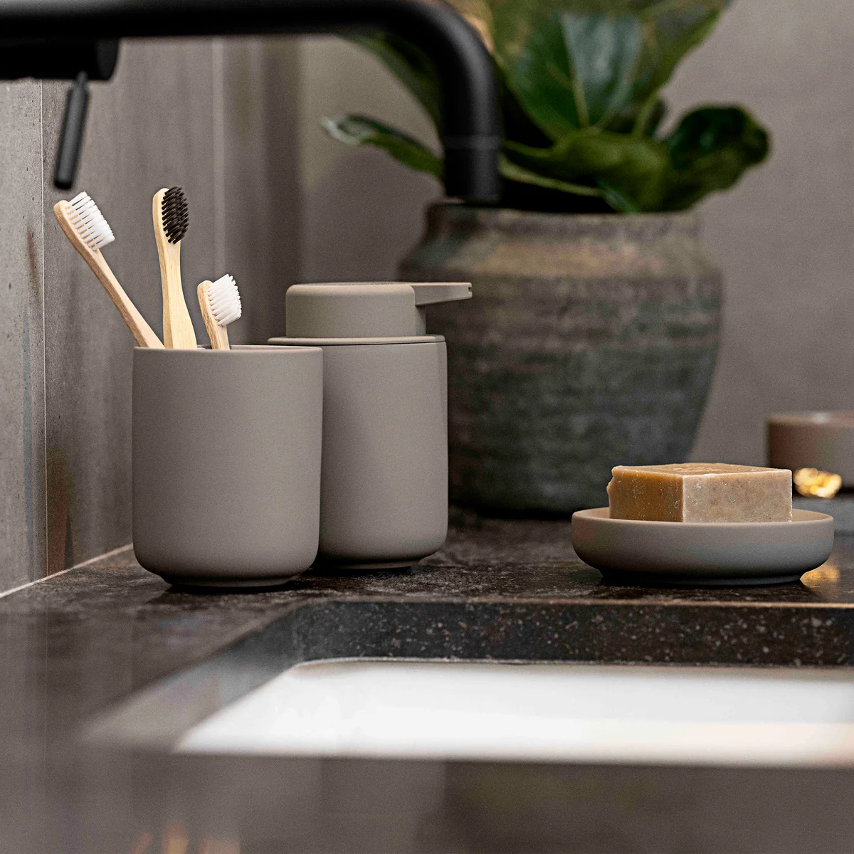 Le Ume gobelet pour dentifrice fait partie de la série du même nom de Zone Denmark qui se compose d'accessoires de salle de bains haut de gamme. Comme tous les produits de la série, le gobelet pour dentifrice se distingue par son design minimaliste, ses contours doux et sa finition particulière. Le gobelet est fabriqué en faïence robuste, qui a ensuite été recouverte d'un revêtement Soft-Touch doux et velouté. Il confère non seulement un aspect élégant, mais aussi un toucher agréable.