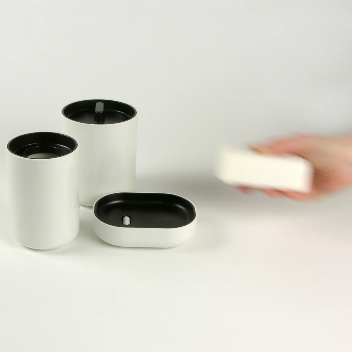 Le porte-savon Lunar fait partie de la collection du même nom d'Edward Barber et Jay Osgerby pour Authenthics. Accessoires de bain simples et fonctionnels.