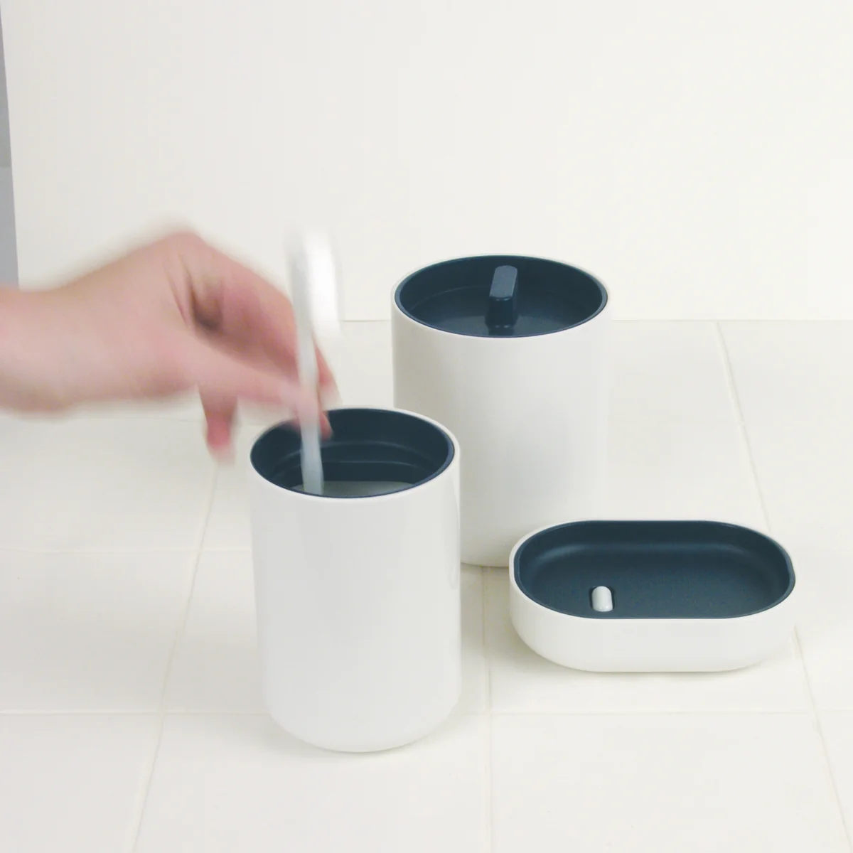 La forme réduite du porte-savon peut être ajustée de façon individuelle à la décoration de votre salle de bains avec des coques intérieures (disponibles dans différentes couleurs).