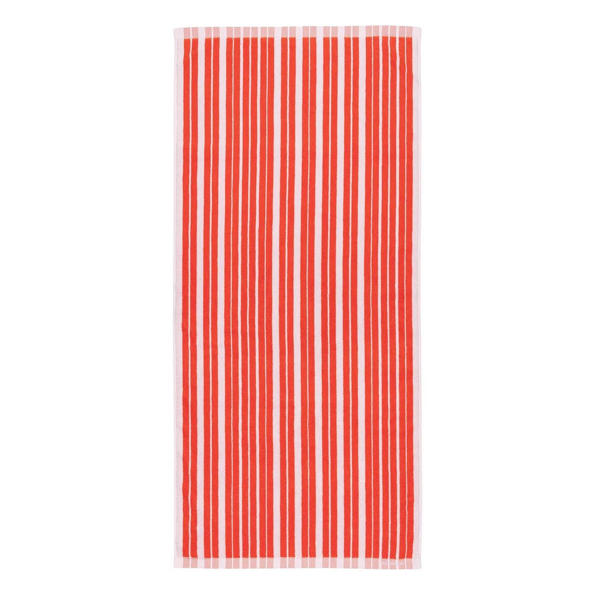 Cette serviette de bain en éponge douce de coton bio allie confort et design intemporel. Le motif Raide créé par Annika Rimala, inspiré des voies ferrées, donne à la serviette un aspect dynamique et dessiné à la main.