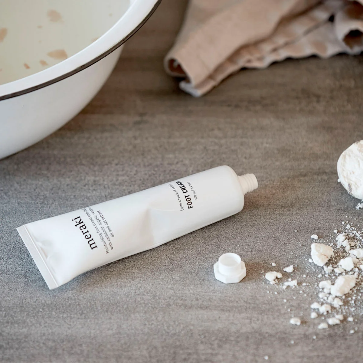 Pour l'utilisation, appliquer la crème pour les pieds Meraki sur des pieds propres et secs et masser généreusement pour que la crème puisse bien pénétrer.