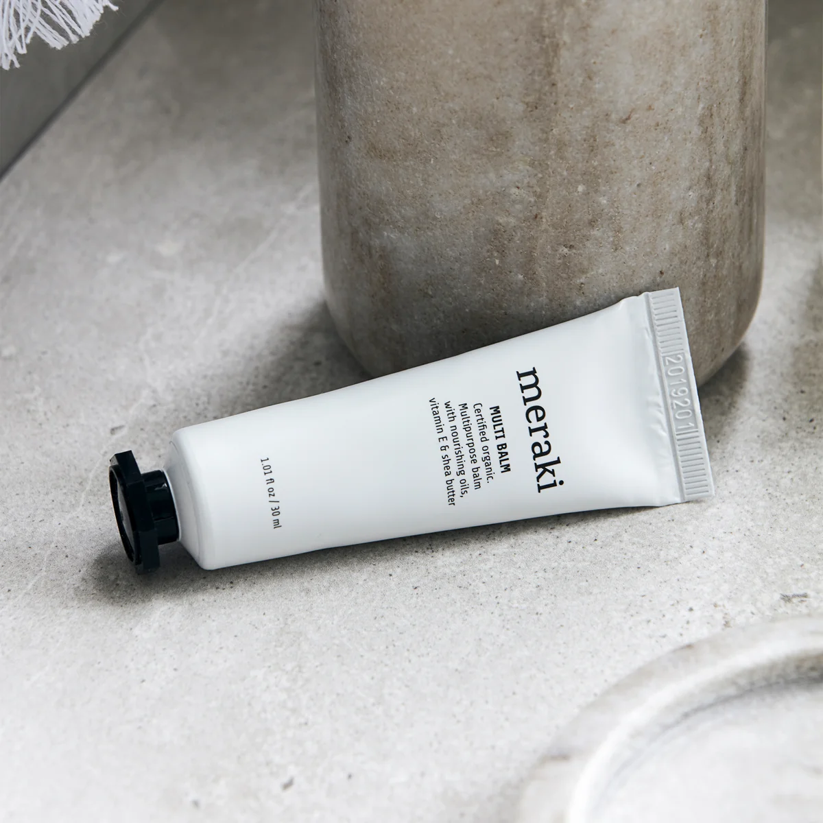 Le baume multi-soins de Meraki offre un boost d'hydratation intense et un soin riche pour les peaux sèches ou abîmées. Tous les ingrédients sont conçus pour apaiser les peaux sèches et irritées et pour rétablir l'équilibre naturel de l'hydratation. Le beurre de karité retient l'humidité et soutient l'élasticité de la peau, tandis que l'huile d'amande et l'huile de tournesol vitaminées apportent un soin supplémentaire.