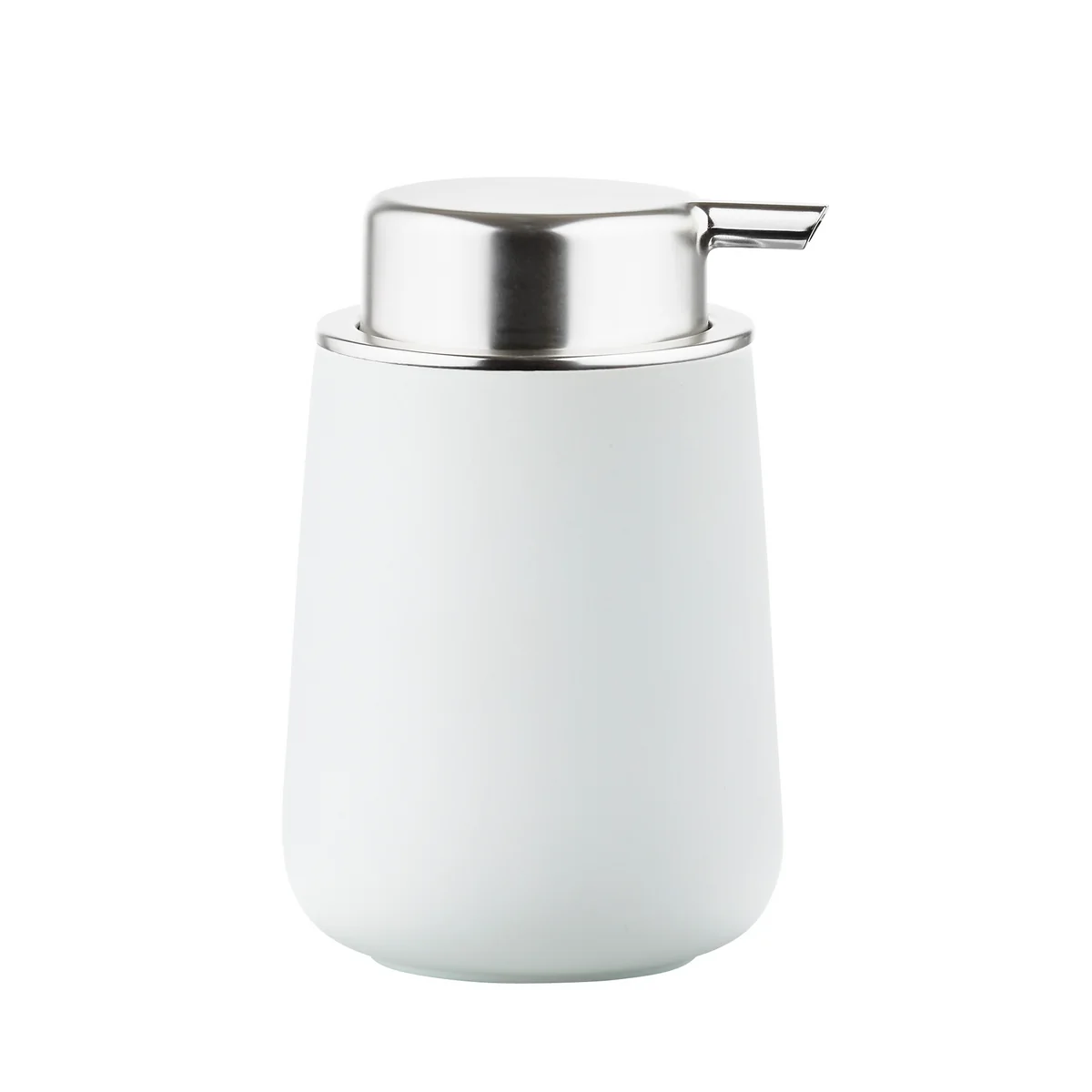 Le distributeur de savon Nova distributeur de savon de Zone Denmark séduit par son aspect sobre et intemporel. Il est fabriqué en porcelaine avec un revêtement Soft Touch en différentes couleurs et en plastique à l'aspect inox et fait partie de la collection de salle de bains du même nom du designer Thomas Dudzinski.