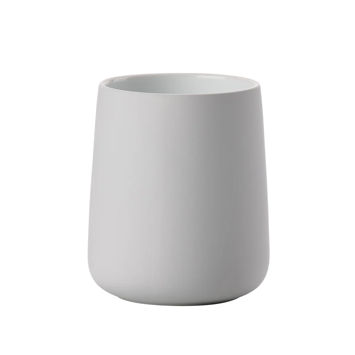 Le gobelet pour dentifrice Nova de Zone Denmark séduit par son aspect sobre et intemporel. Il est fabriqué en porcelaine avec un revêtement Soft Touch en différentes couleurs et une surface intérieure en blanc. Il fait partie de la collection de salle de bains du même nom de Thomas Dudzinski.