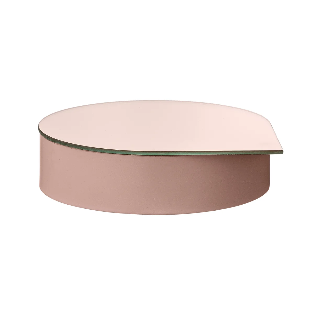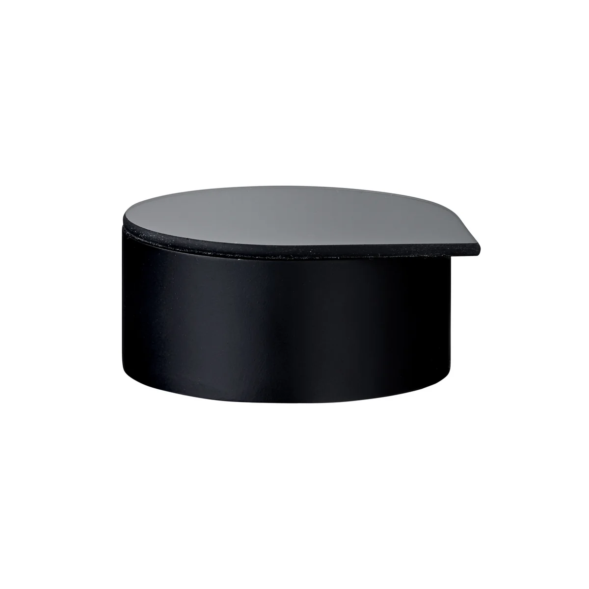 Le couvercle fonctionne également comme un miroir et peut être facilement glissé dans l'espace étroit entre les deux plus petits compartiments. Grâce à sa forme de goutte, le miroir y a un support sûr et peut être utile pour mettre des colliers et des boucles d'oreilles. La gutta est également idéale pour conserver les produits cosmétiques, et le miroir peut être utilisé pour la routine du matin.
