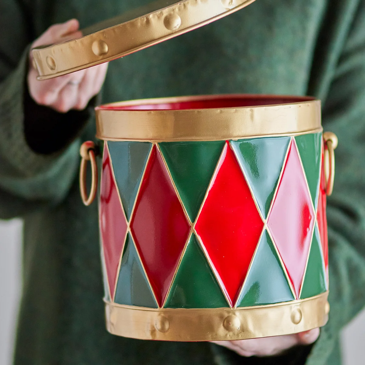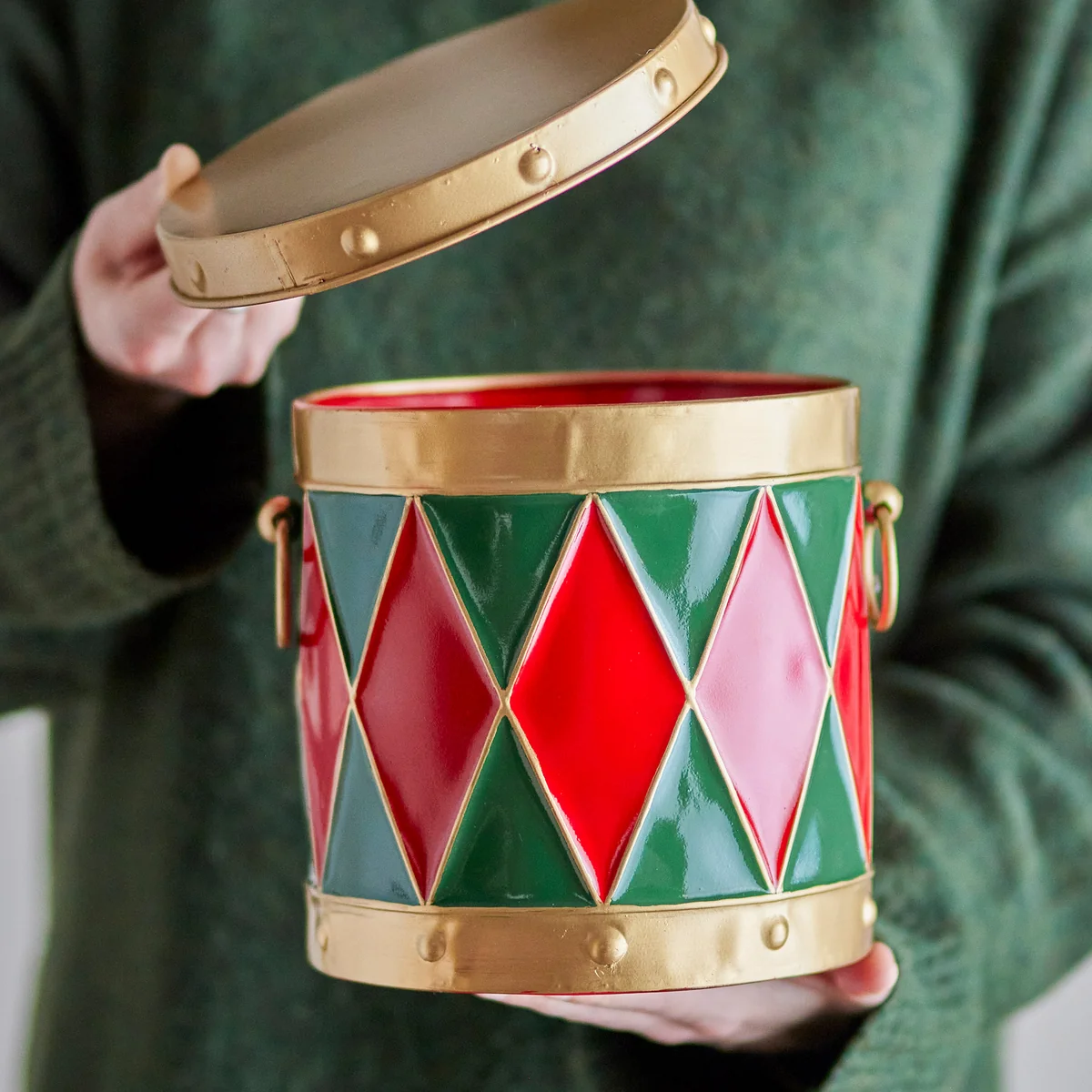 - Forme de tambour et détails fins dans des couleurs festives
