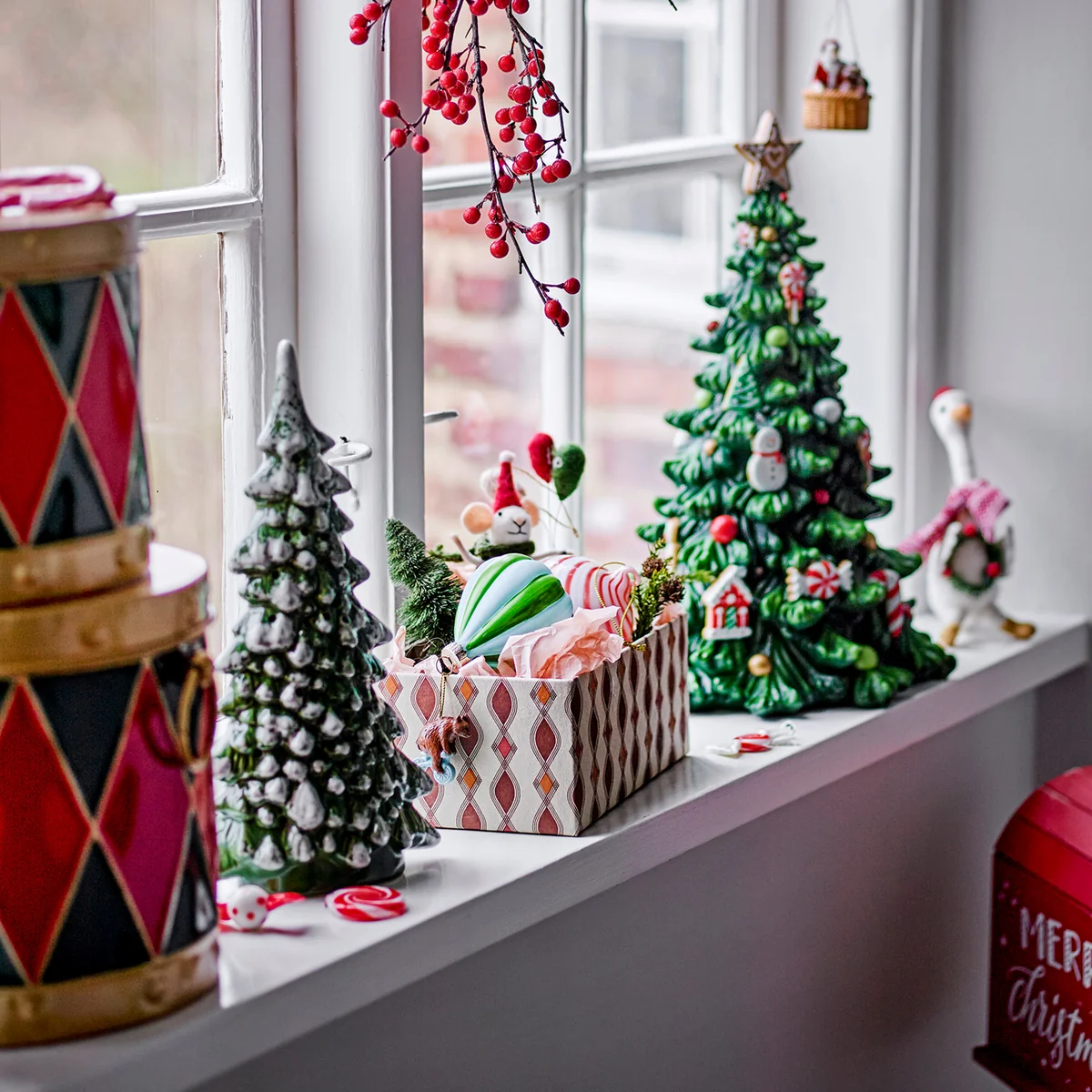 La boîte Yuri avec couvercle de Bloomingville est un ensemble décoratif composé de deux boîtes en forme de tambour aux couleurs classiques de Noël. Que ce soit pour ranger de petits accessoires ou comme décoration d'ambiance, les boîtes peuvent être utilisées de différentes manières et apportent une touche festive à votre intérieur.