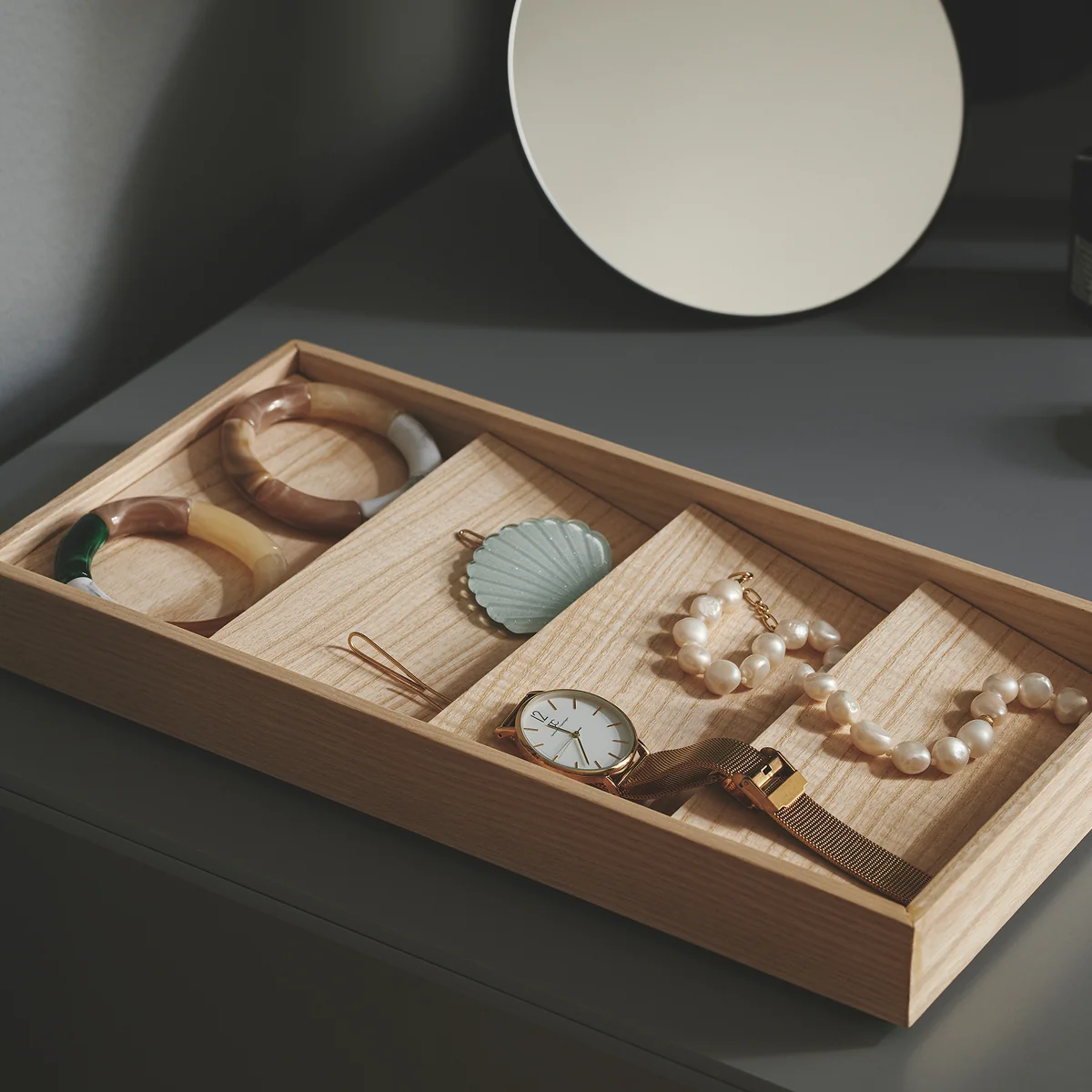 Inspiré par les dunes de sable du paysage derrière Valence, l'organiseur Duune Organizer a été conçu par Gejst . L'organiseur se compose d'un cadre en chêne ou en frêne dans lequel sont disposés plusieurs blocs de bois. Ceux-ci créent une multitude de petits rangements pour les bijoux et peuvent être disposés individuellement. Le Duune Organizer, en noir élégant ou en ton naturel, est idéal pour ranger les bijoux et les montres avec style. Le coffret de Gejst peut être placé sur une commode dans la chambre à coucher ou sur une étagère dans la salle de bains. En alternative, il Duune Il peut également être posé sur le bureau pour y mettre de l'ordre.