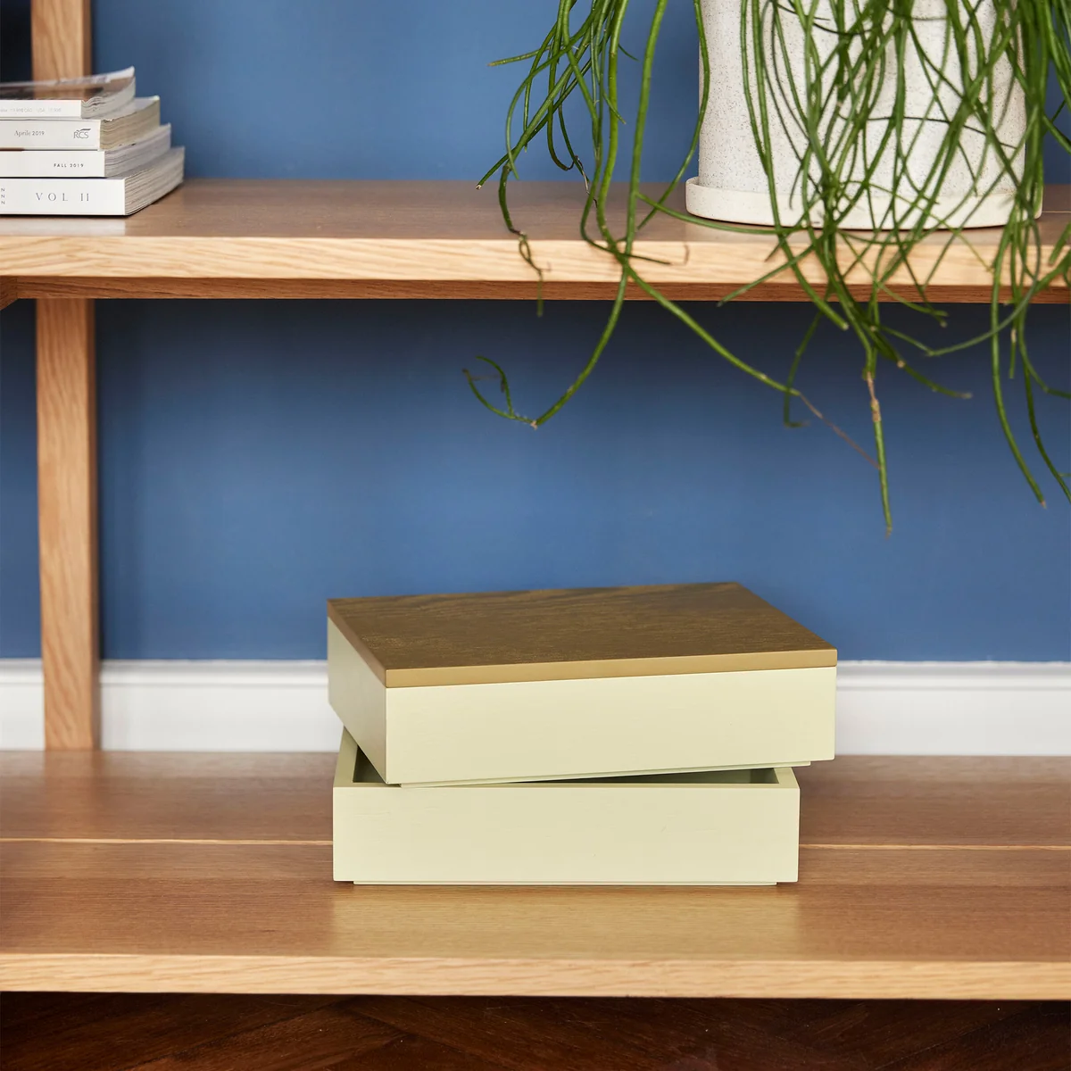 La boîte de rangement avec couvercle est une aide polyvalente pour toute la maison. Ce coffret chic fait particulièrement bonne figure au bureau : les différents modules peuvent être empilés et fermés par un couvercle à volonté. Câbles, papiers, petits objets du quotidien ou bijoux s'y intègrent parfaitement. Grâce au couvercle, le contenu peut être caché des regards indiscrets. Plusieurs des boîtes empilées forment une étagère pratique pour l'organisation sur le bureau.