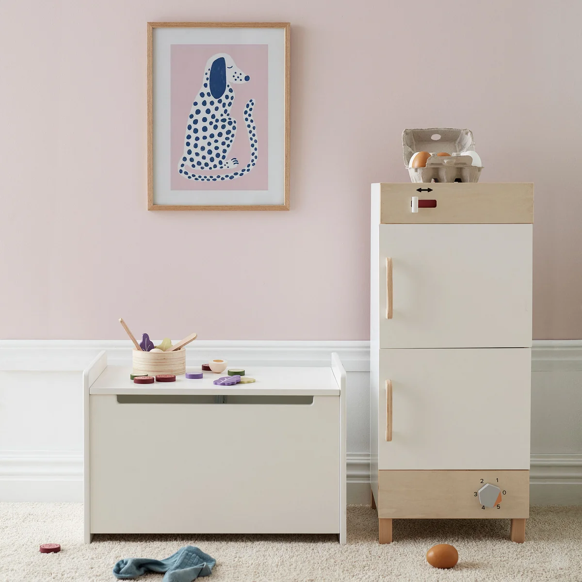 Avec sa taille généreuse, le coffre offre suffisamment de place pour les jouets, les peluches, les livres et bien plus encore. Son design intemporel s'intègre parfaitement dans chaque chambre d'enfant et peut même être utilisé comme siège supplémentaire ou comme élément de décoration.