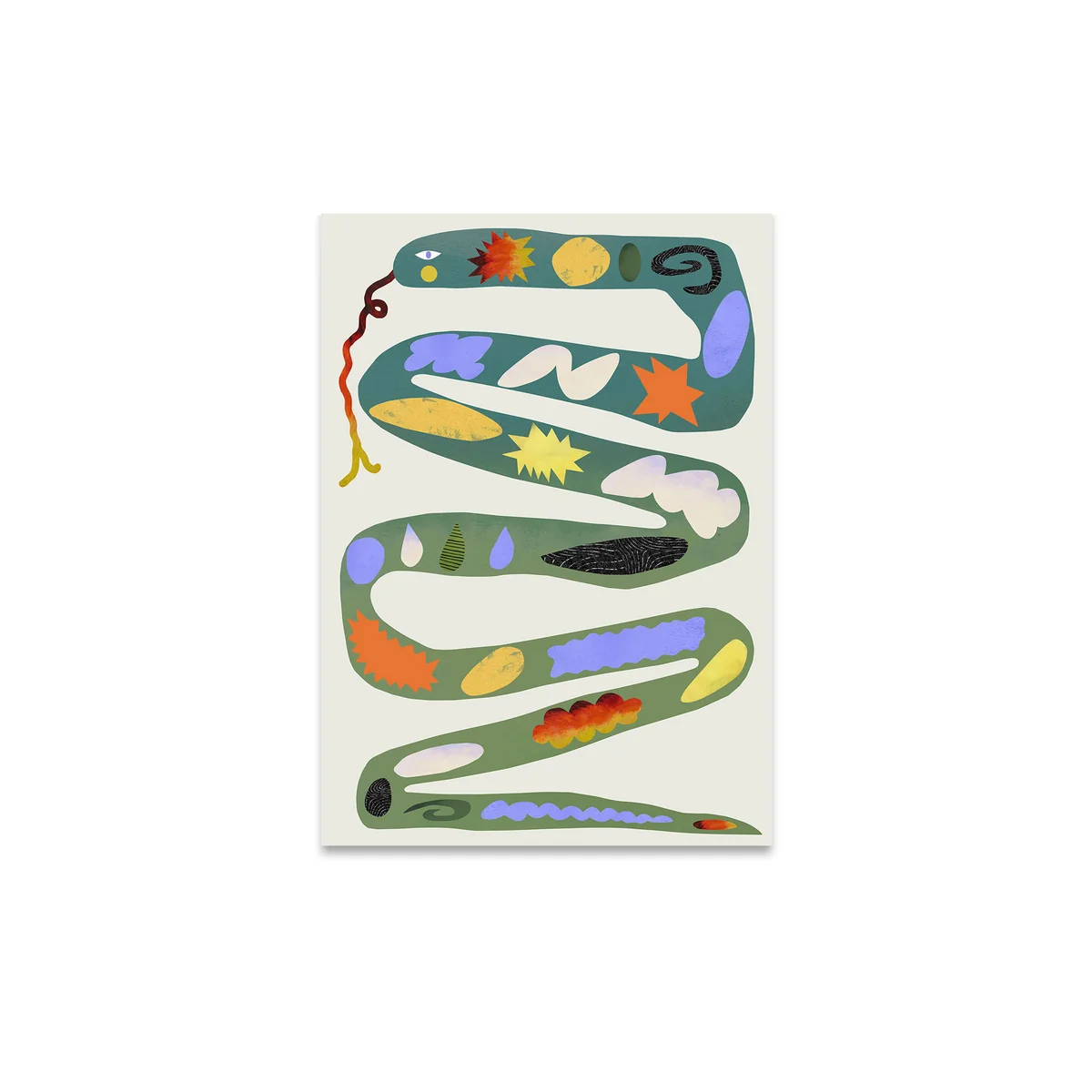 Le site Green Snake Poster d'Imogen Crossland pour Paper Collective séduit par son motif ludique de serpent. Les formes découpées à la main sont inspirées de l'artiste français Henri Matisse. Le poster est fabriqué à la main et curé à Copenhague. Green Snake est produit sous le système de certification Swan. Disponible en différentes tailles.