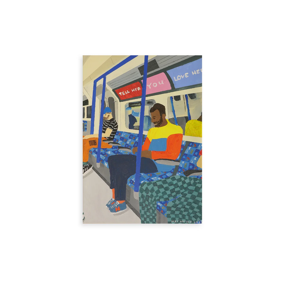 Le poster Tell Her You Love Her de Paper Collective présente un moment dans le métro, capturé par l'artiste May Watson à Londres.