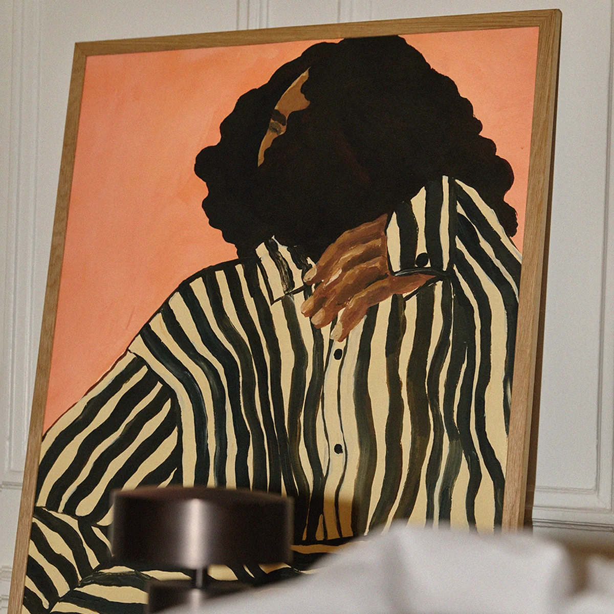 Serene Stripes L'impression en giclée Fine Art de Hanna Peterson pour The Poster Club enthousiasme par sa technique d'impression magnifique. Le motif d'une femme en chemisier à rayures séduit ici par la profondeur de ses nuances de couleurs intenses. En combinaison avec le papier naturel de haute qualité, l'archivage des couleurs et une durabilité maximale sont garantis.