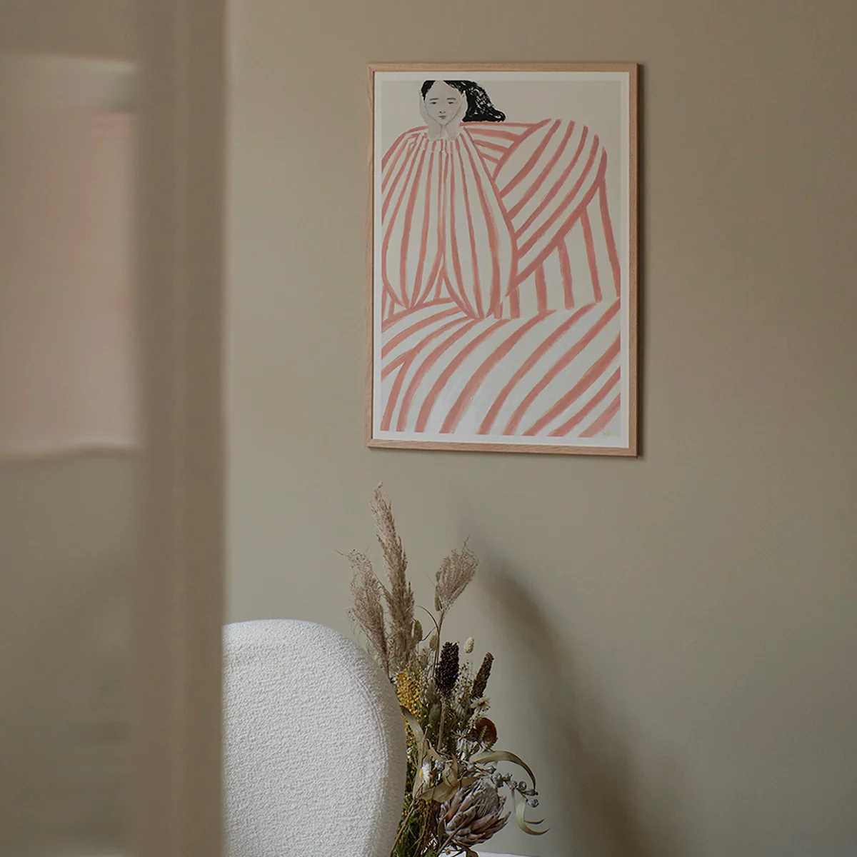 Still Waiting L'impression en giclée Fine Art de Sofia Lind pour The Poster Club enthousiasme par sa technique d'impression grandiose. Le motif à rayures d'une femme qui attend séduit ici par la profondeur de ses nuances de couleurs intenses. En combinaison avec le papier naturel de haute qualité, l'archivage des couleurs et une durabilité maximale sont garantis.