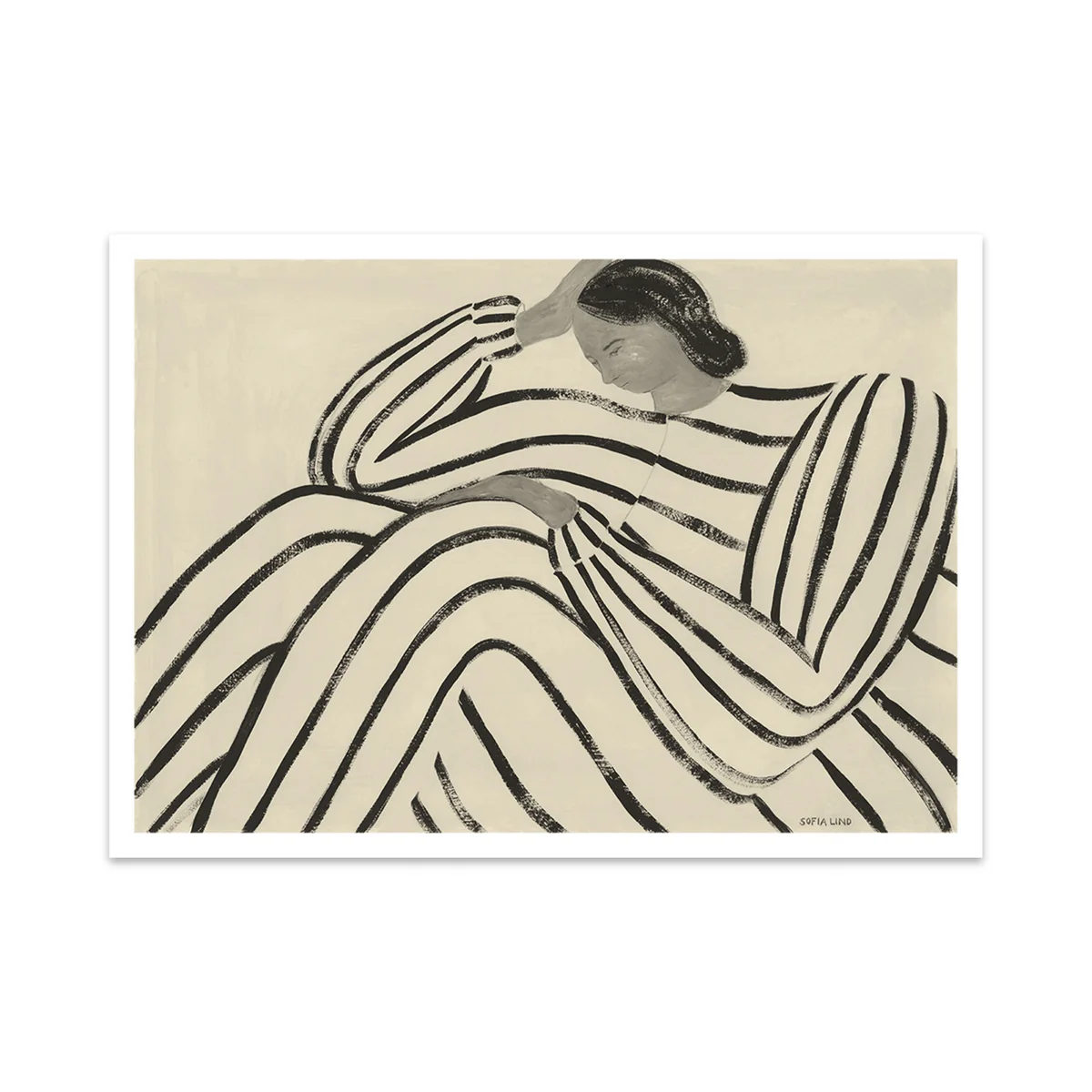 Waiting L'impression en giclée Fine Art de Sofia Lind pour The Poster Club enthousiasme par sa superbe technique d'impression. Le grand motif à rayures nostalgique aux couleurs sobres séduit ici par la profondeur de ses nuances de couleurs intenses. En combinaison avec le papier naturel de haute qualité, l'archivage des couleurs et une longévité maximale sont garantis.