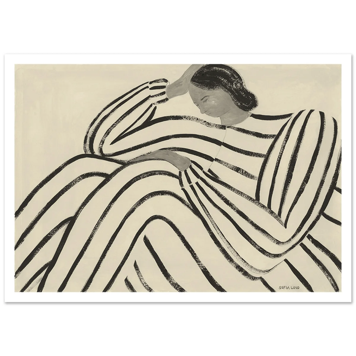 Waiting L'impression en giclée Fine Art de Sofia Lind pour The Poster Club enthousiasme par sa superbe technique d'impression. Le grand motif à rayures nostalgique aux couleurs sobres séduit ici par la profondeur de ses nuances de couleurs intenses. En combinaison avec le papier naturel de haute qualité, l'archivage des couleurs et une longévité maximale sont garantis.