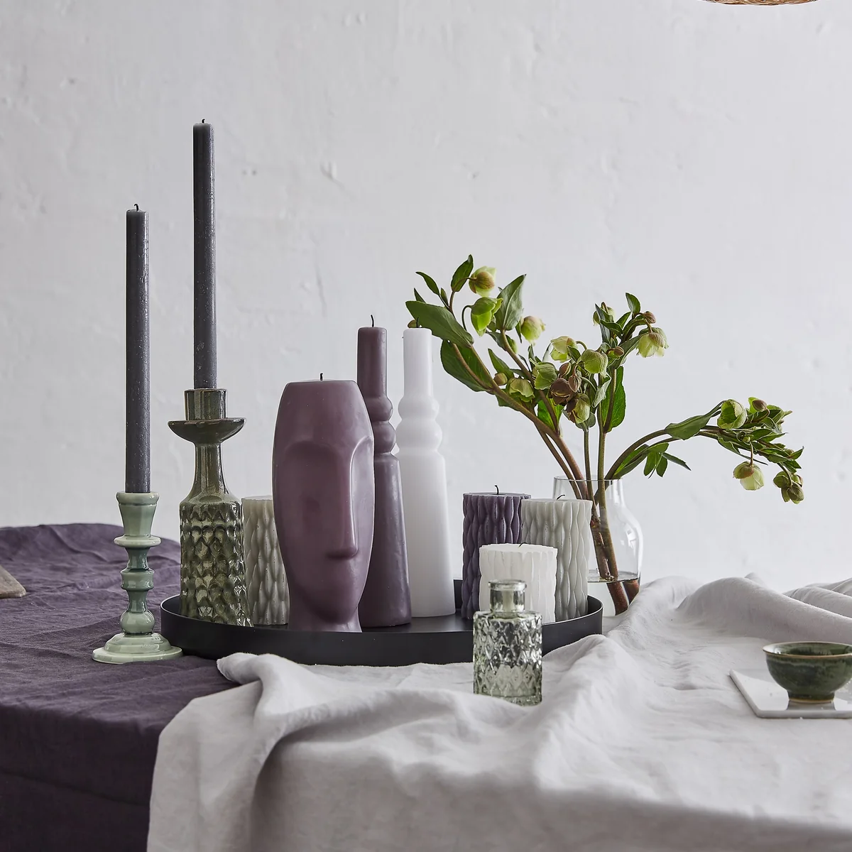 Collection - Bougeoir en bloc massif, H 23 cm / gris foncé