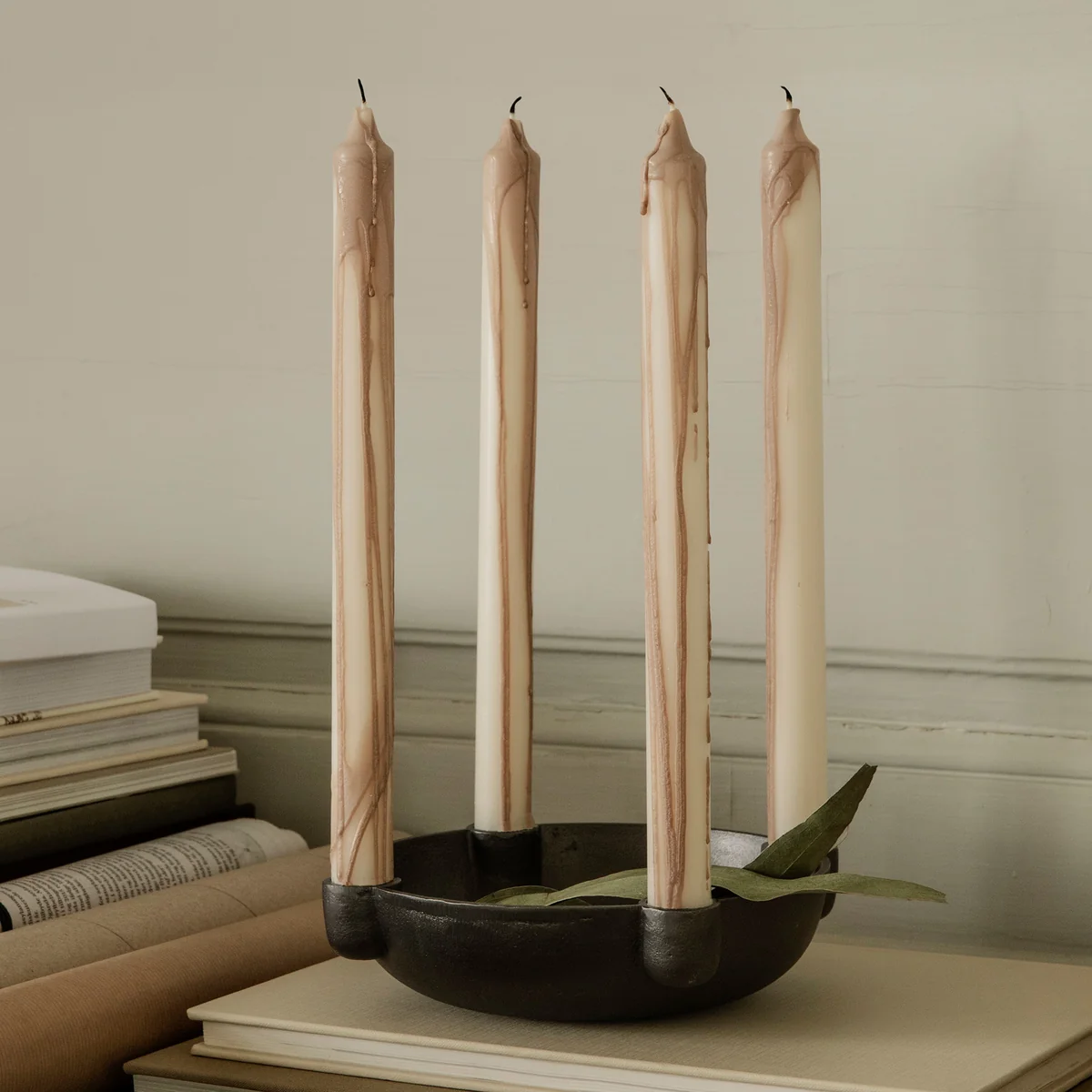 Les Dryp de Ferm Living se distinguent par leur couleur de base blanche-grise qui se fond à merveille avec les effets dégoulinants à la main qui, en raison de leur couleur contrastée, créent un bel effet visuel et donnent un look dynamique et puissant. Les bougies sont fabriquées à partir de 100% de stéarine, certifiée par l'écolabel nordique.