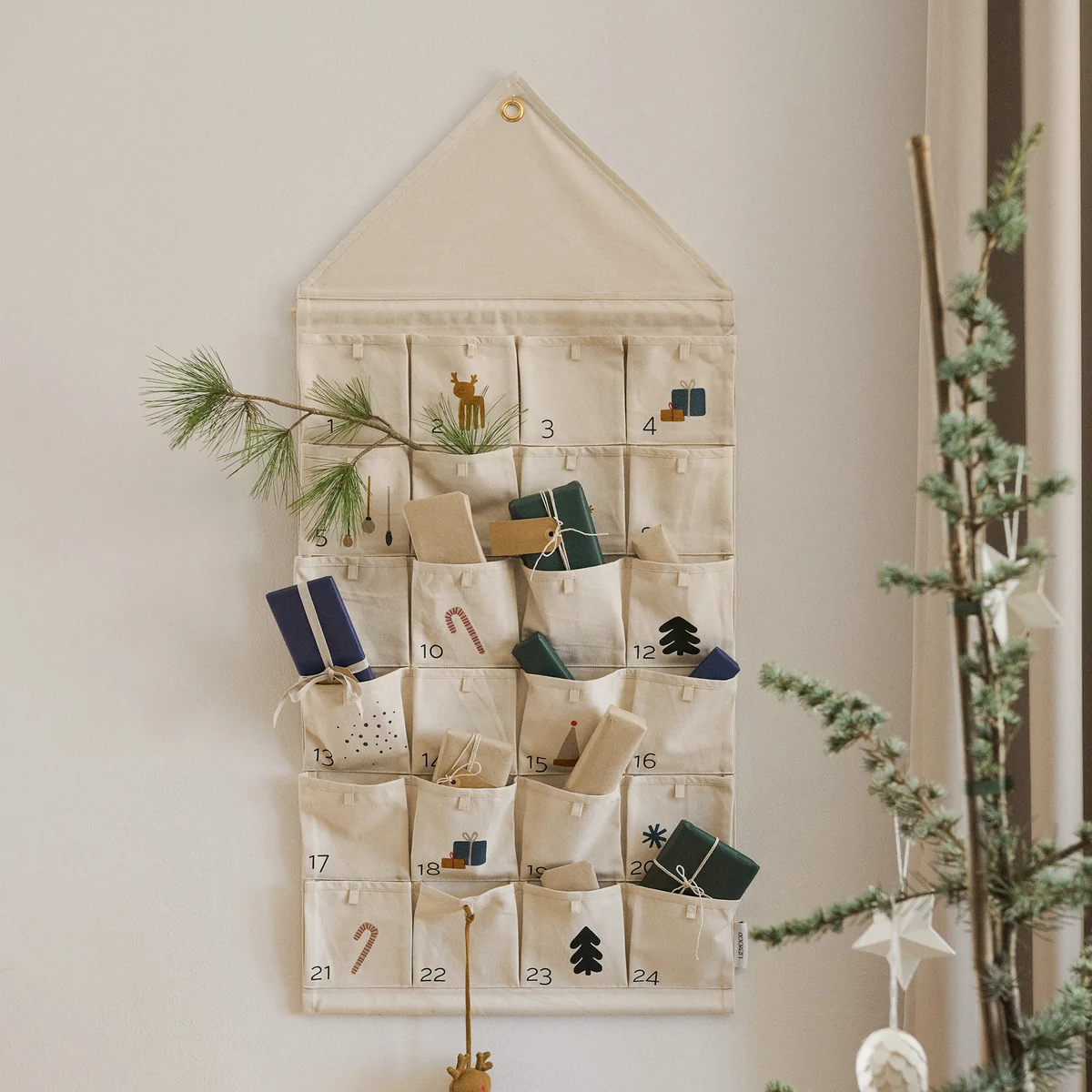 Calendrier de l'Avent réutilisable en coton bio avec poches