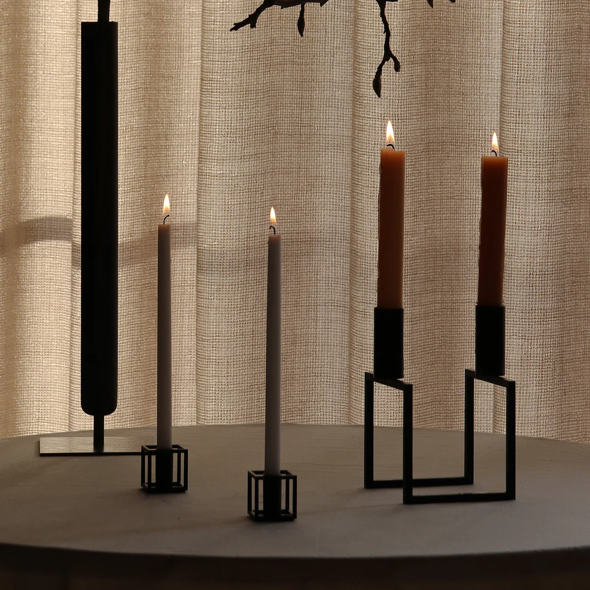 Aujourd'hui encore, les bougeoirs Audo Kubus Line sont fabriqués par des artisans expérimentés à Holstebro, au Danemark, et représentent ainsi le véritable artisanat danois. Les bougeoirs en acier laqué de Audo sont disponibles en différentes variantes.