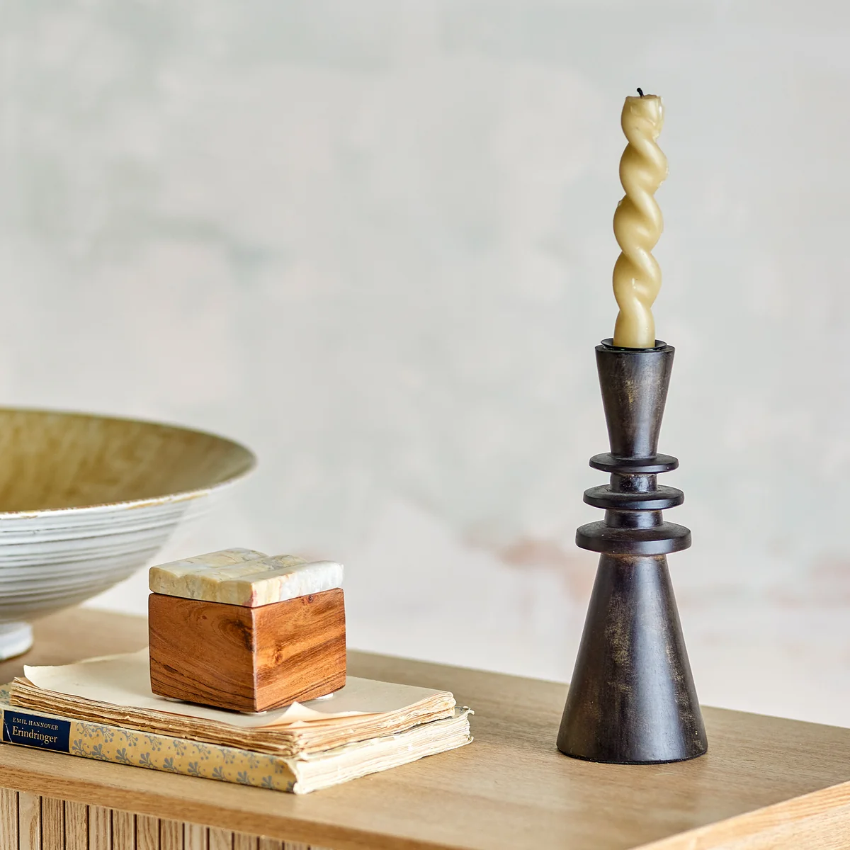 Le Armel bougeoir de Bloomingville allie matériaux naturels et élégance intemporelle. Fabriqué en bois de manguier de haute qualité et affiné avec une teinture noire, les veines naturelles restent visibles et confèrent au design une note chaleureuse et organique.