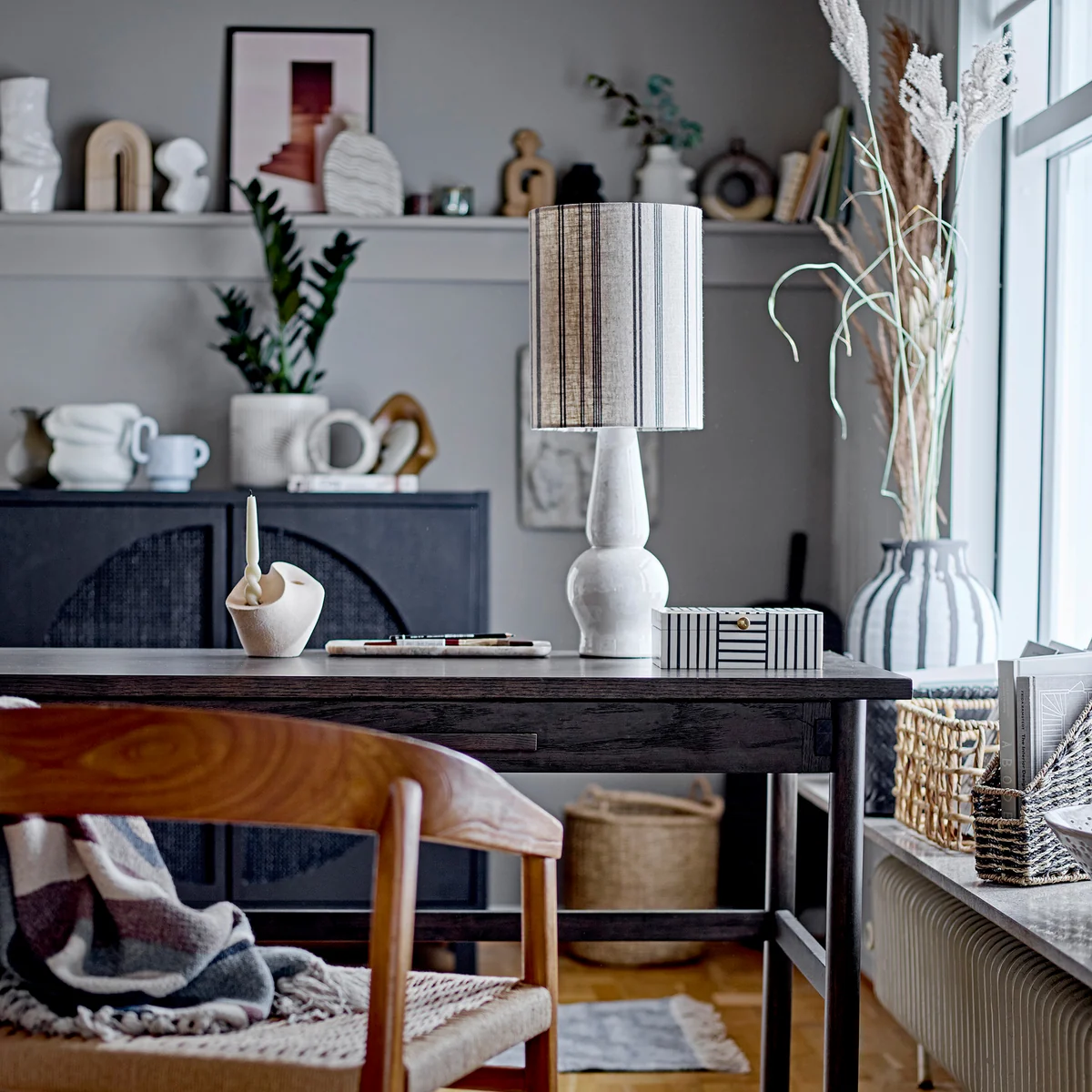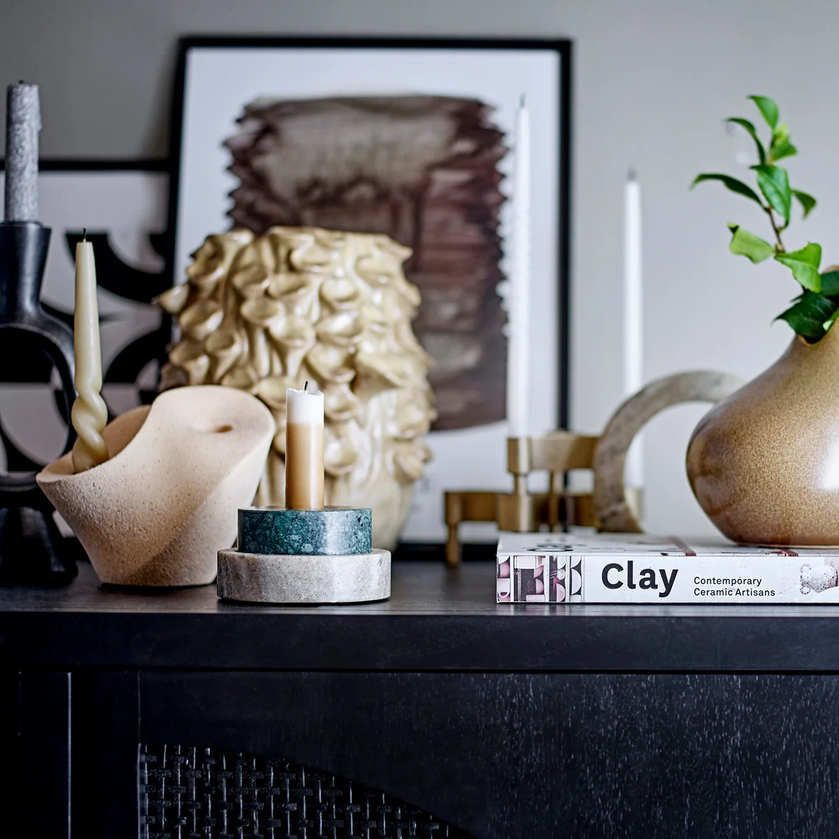 Le bougeoir Brent de Bloomingville a une belle forme graphique avec une structure mate dans un beige chaud - il y a de la place pour deux bougies.