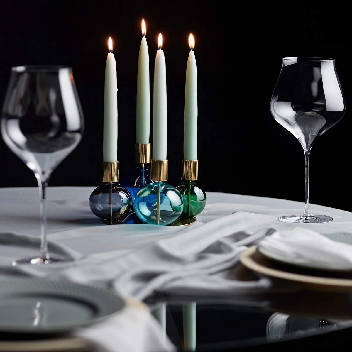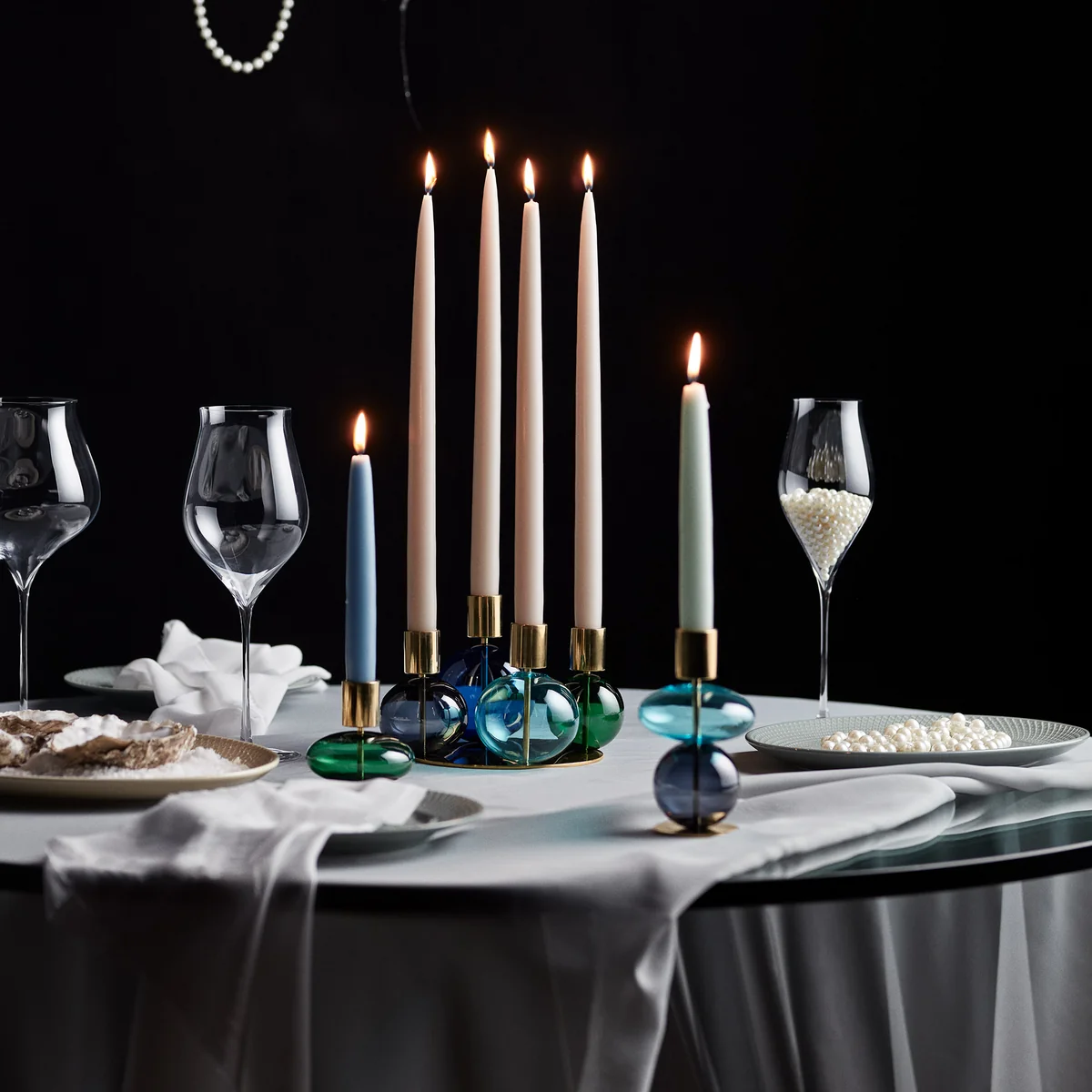 Le bougeoir Bubble de Holmegaard apporte l'art du verre scandinave dans un nouveau langage des formes ludique. Inspiré par la légèreté organique des bulles d'air ascendantes, il en résulte un objet qui convainc par ses lignes claires et sa structure d'empilement harmonieuse. Fabriqué en verre soufflé à la bouche, chaque bougeoir est une pièce artisanale unique. Le matériau translucide capte la lumière des bougies avec douceur et crée une atmosphère pleine d'ambiance - seul ou en ensemble.