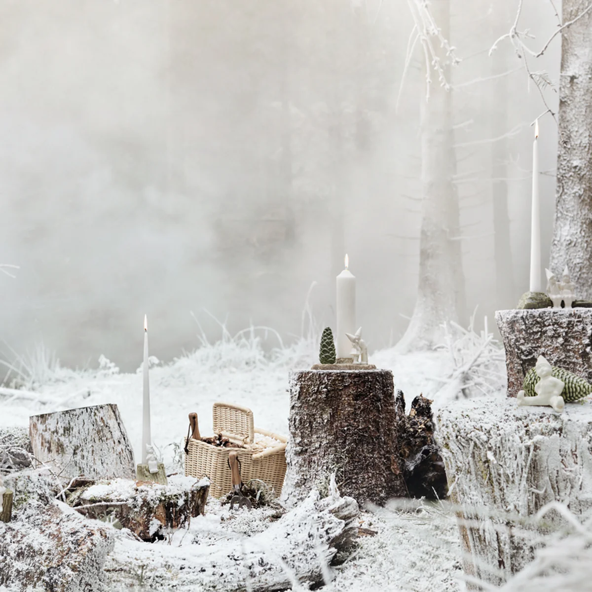 Ils s'inspirent de vieilles légendes : Chacune d'entre elles raconte une histoire, les éléments de la magnifique nature nordique servant de décor aux clichés. Le décor naturel du bougeoir porte deux figures entièrement blanches : le petit couple adorable nous rappelle qu'il faut offrir un cadeau du cœur qui ne nécessite aucun emballage : L'amour. Le bougeoir diffuse cette sensation agréable et chaleureuse à la lumière d'une bougie de l'Avent.