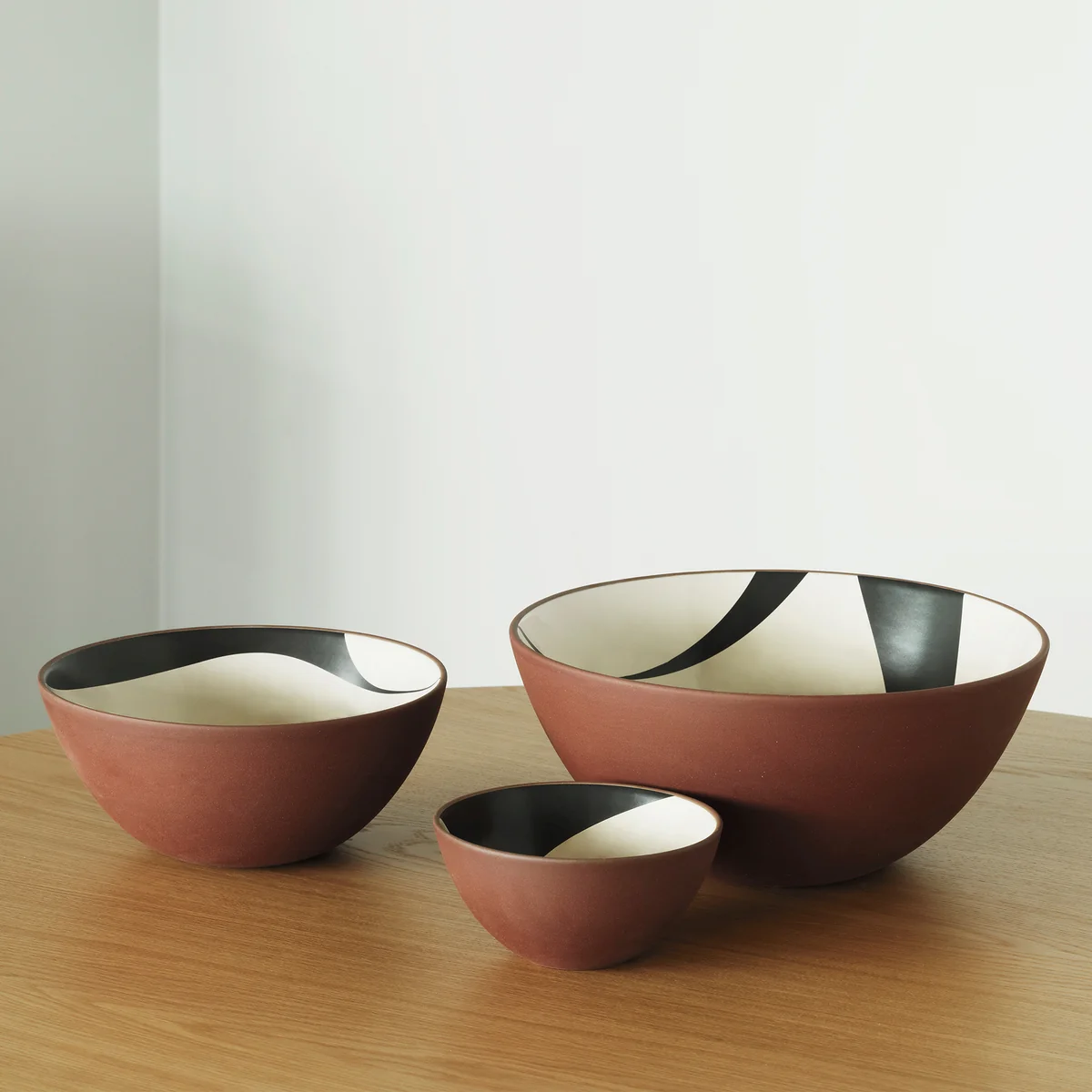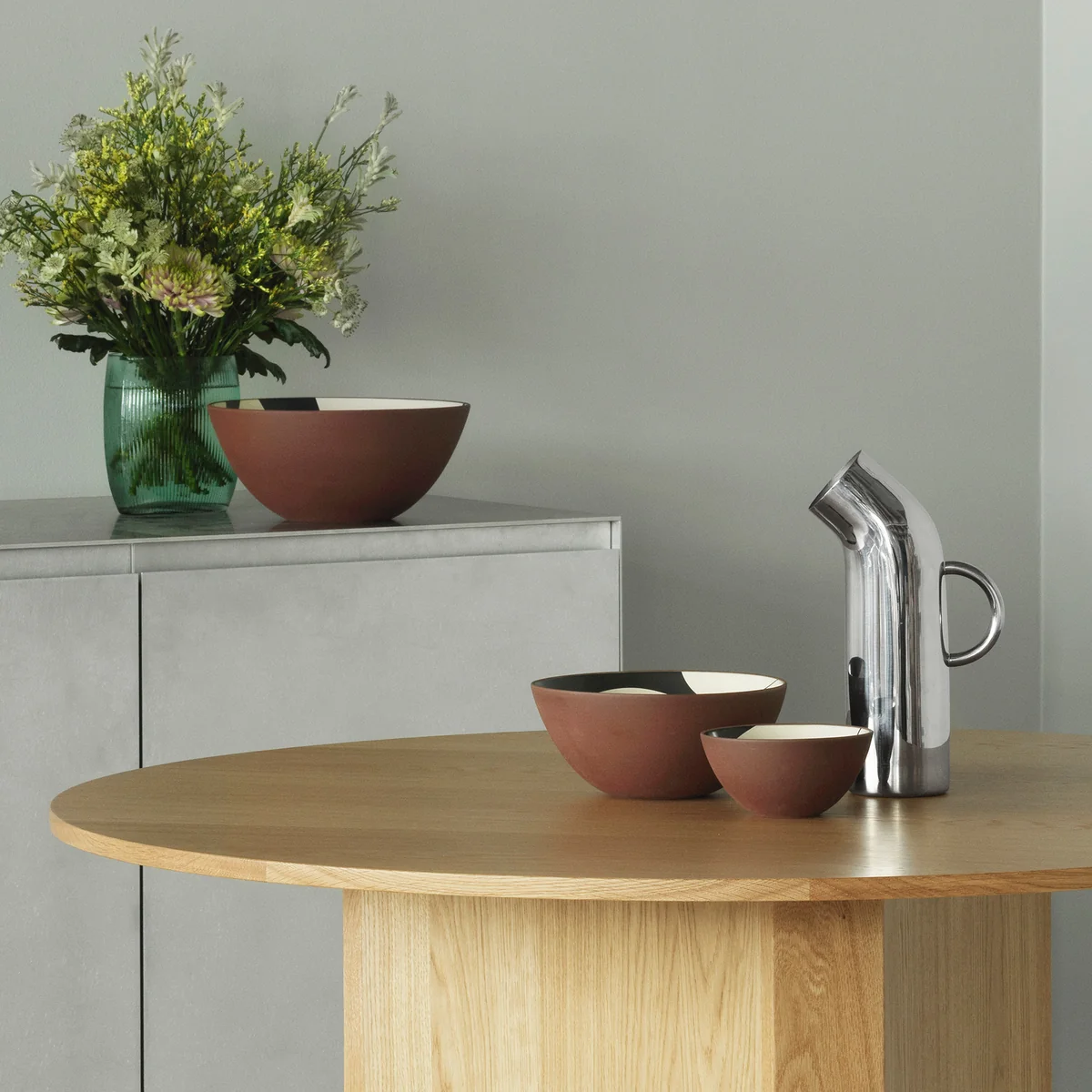 Avec les motifs fascinants de la Line bol de Normann Copenhagen permettent de donner de nouveaux accents à la table. Ces coupes exceptionnelles en argile rouge sont décorées d'impressions remarquables en noir intense et en crème délicate qui en font l'incarnation de l'élégance.