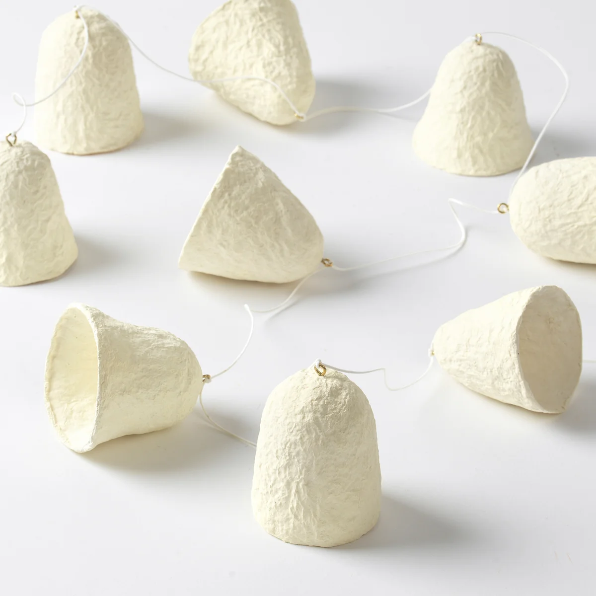 La guirlande de cloches Christmas Pulp de la maison Broste Copenhagen peut être utilisée toute l'année pour décorer les pièces de la maison. Elle est fabriquée en coton et peut être suspendue à volonté au-dessus de la cheminée, sur des étagères ou placée sur la table comme élément de décoration. Disponible en différentes couleurs sobres.