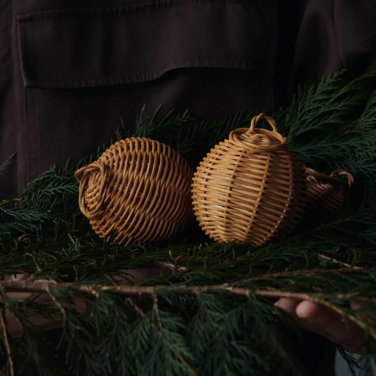 Les décorations de Noël Braided de Ferm Living apportent l'artisanat traditionnel à la décoration de Noël moderne. Chaque pendentif est soigneusement tressé à la main en rotin 100 % et séduit par son matériau naturel de couleur miel. Son look sobre et analogue confère chaleur et authenticité à tout environnement festif. Équipé d'un mini-anneau et d'une suspension en rotin, le pendentif peut être utilisé de manière flexible - sur un sapin de Noël, sur des branches ou comme élément d'une guirlande décorative.
