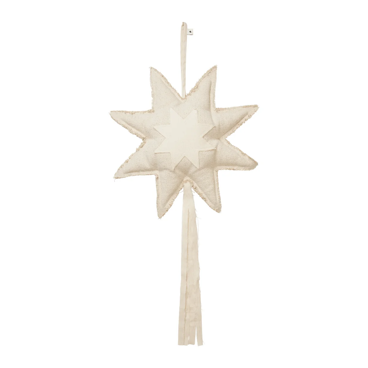 -Aspect artisanal : forme d'étoile avec bords effilochés et détail appliqué.