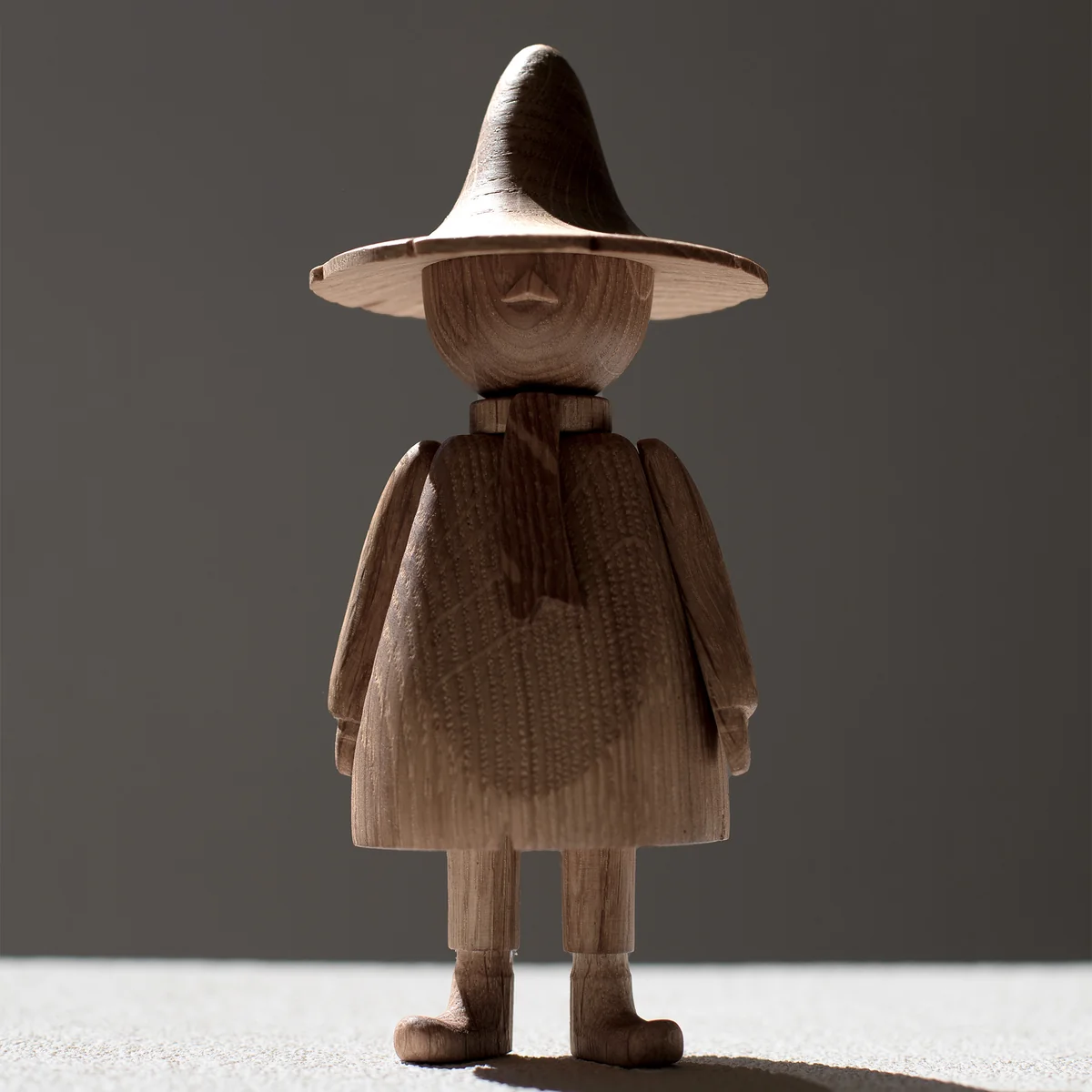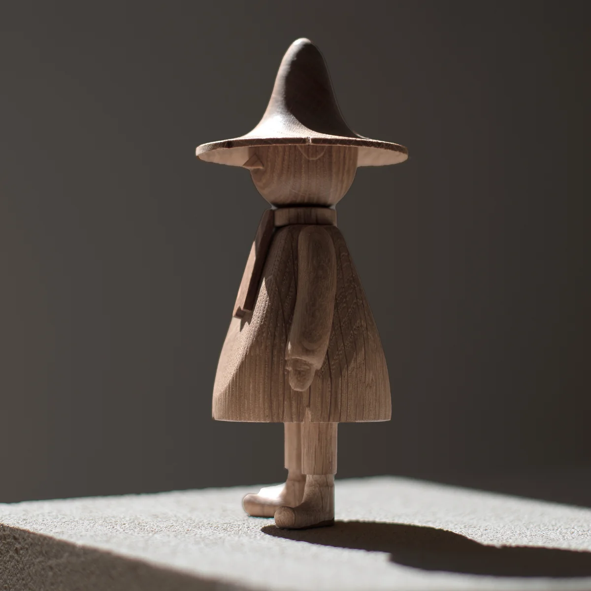 La figurine en bois Snufkin de boyhood , le meilleur ami du troll Moomin, est revenu de ses voyages pour lui tenir compagnie.