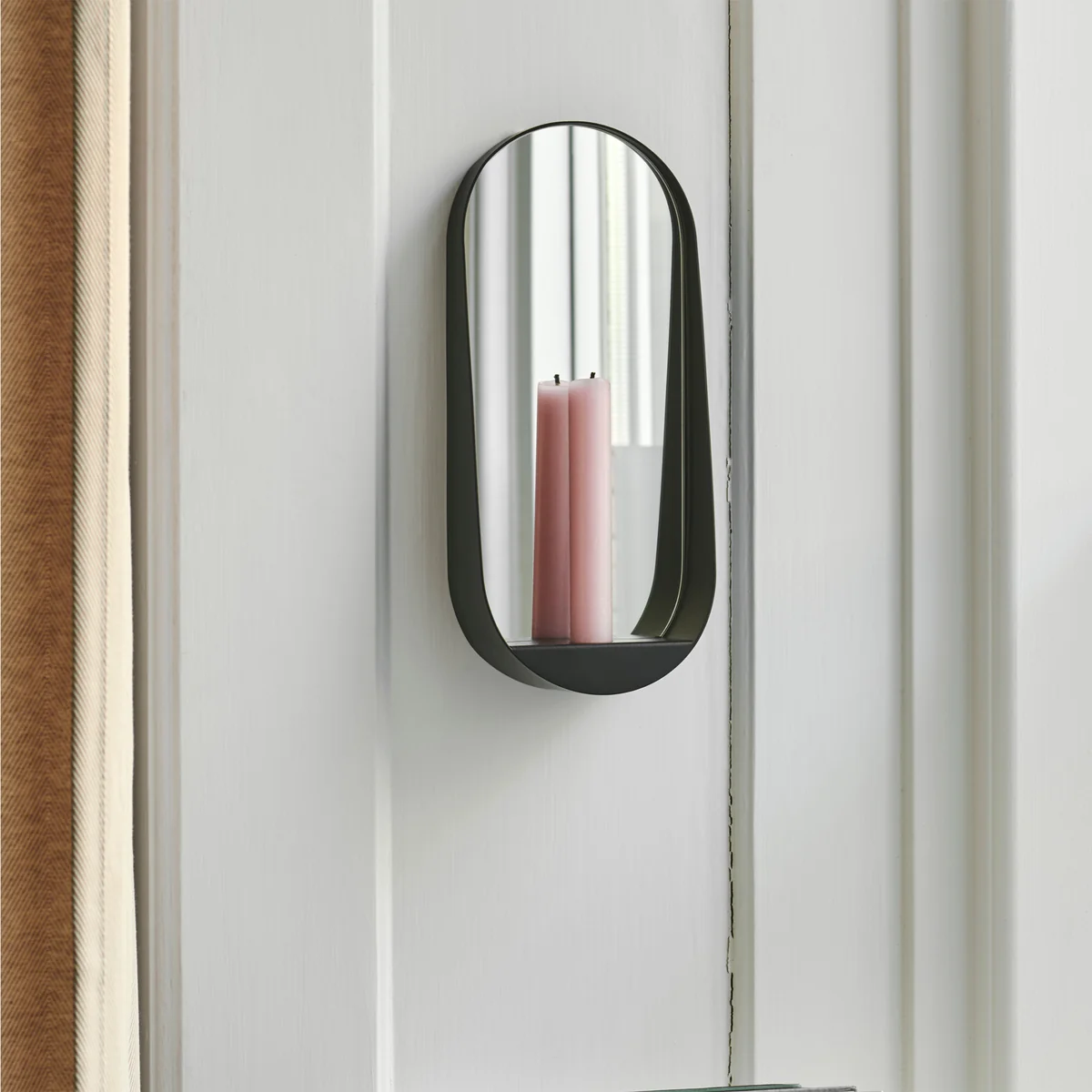 Le Glim Candle miroir mural Gejst est fait de verre miroir et d'un cadre avec bougeoir en acier. Disponibles sous différentes formes, les miroirs muraux se complètent à merveille les uns avec les autres et deviennent ainsi un accroche-regard sur le mur du couloir, du salon, de la salle de bain, de la cuisine ou de la chambre à coucher.