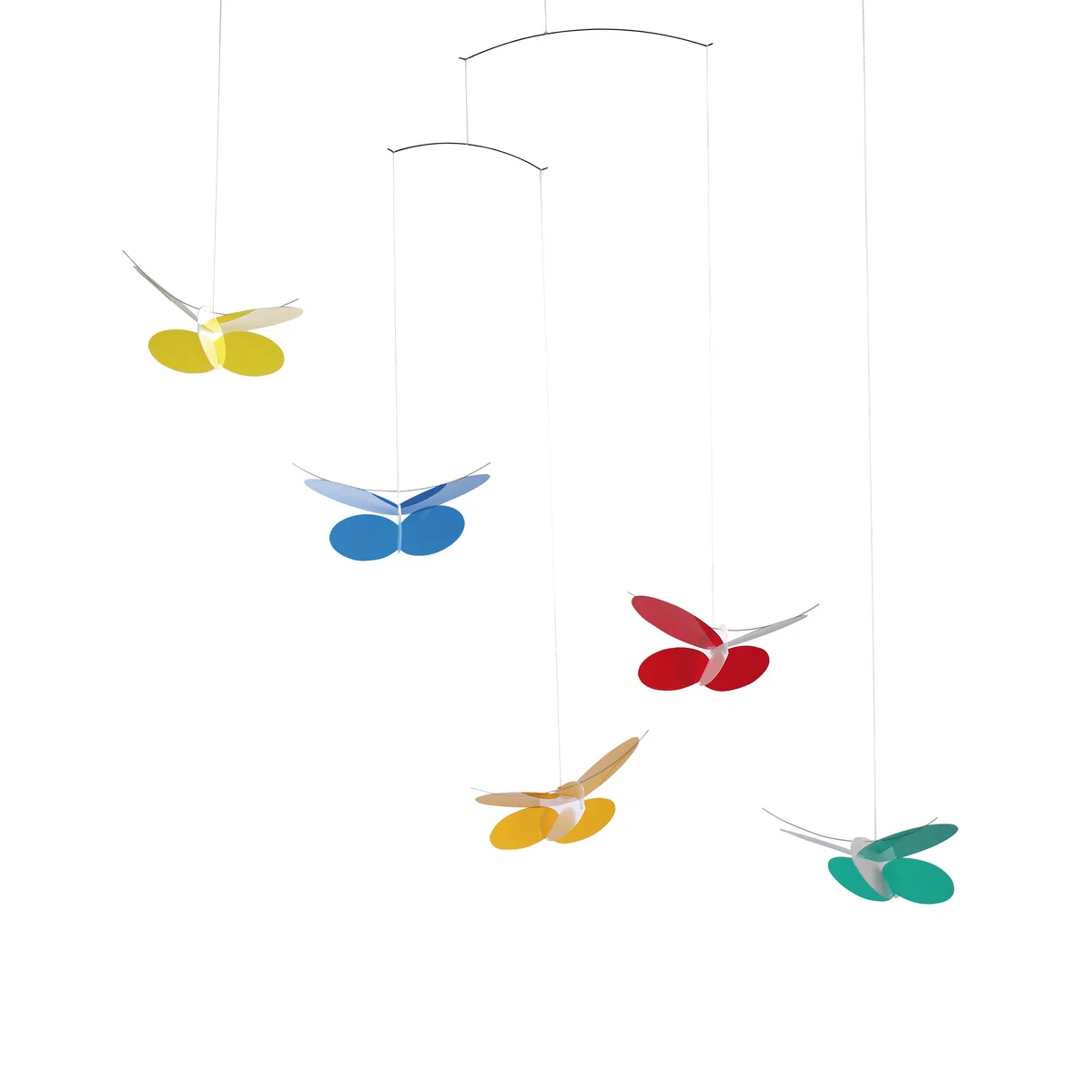 Le Butterflies mobile de Flensted Mobiles montre des papillons joyeux et colorés. Le beau mobile a été conçu par Louise B. Helmersen, qui s'est orientée sur les couleurs de la nature. Que ce soit dans le salon ou dans la chambre des enfants - le mobile Butterflies Mobile apporte un style naturel à vos quatre murs.