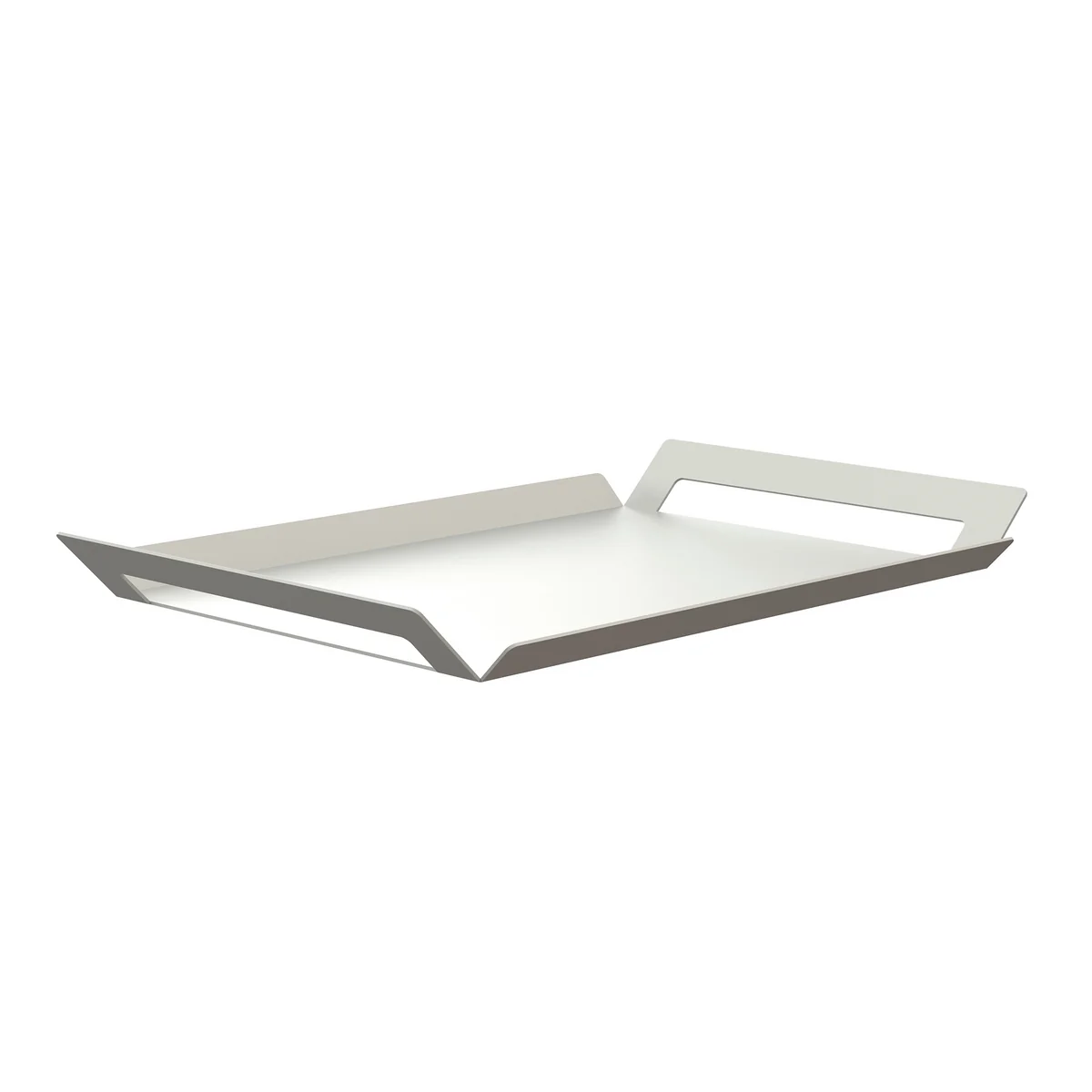 Fabriqué en aluminium puis laqué, le plateau est disponible en différentes variations de couleurs.