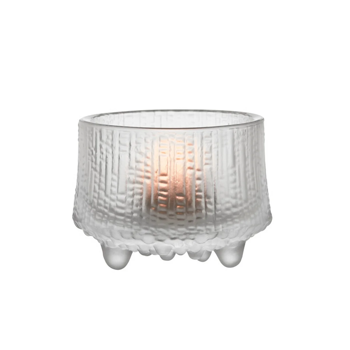 Le Ultima Thule Les porte-bougies à thé de Iittala sont des chefs-d'œuvre artisanaux, résultat du long et difficile travail du designer Tapio Wirkkala. L'effet unique et texturé du verre imite la fonte des glaciers de Laponie. D'où le nom Ultima Thule car c'est le nom du point de terre le plus septentrional du monde.