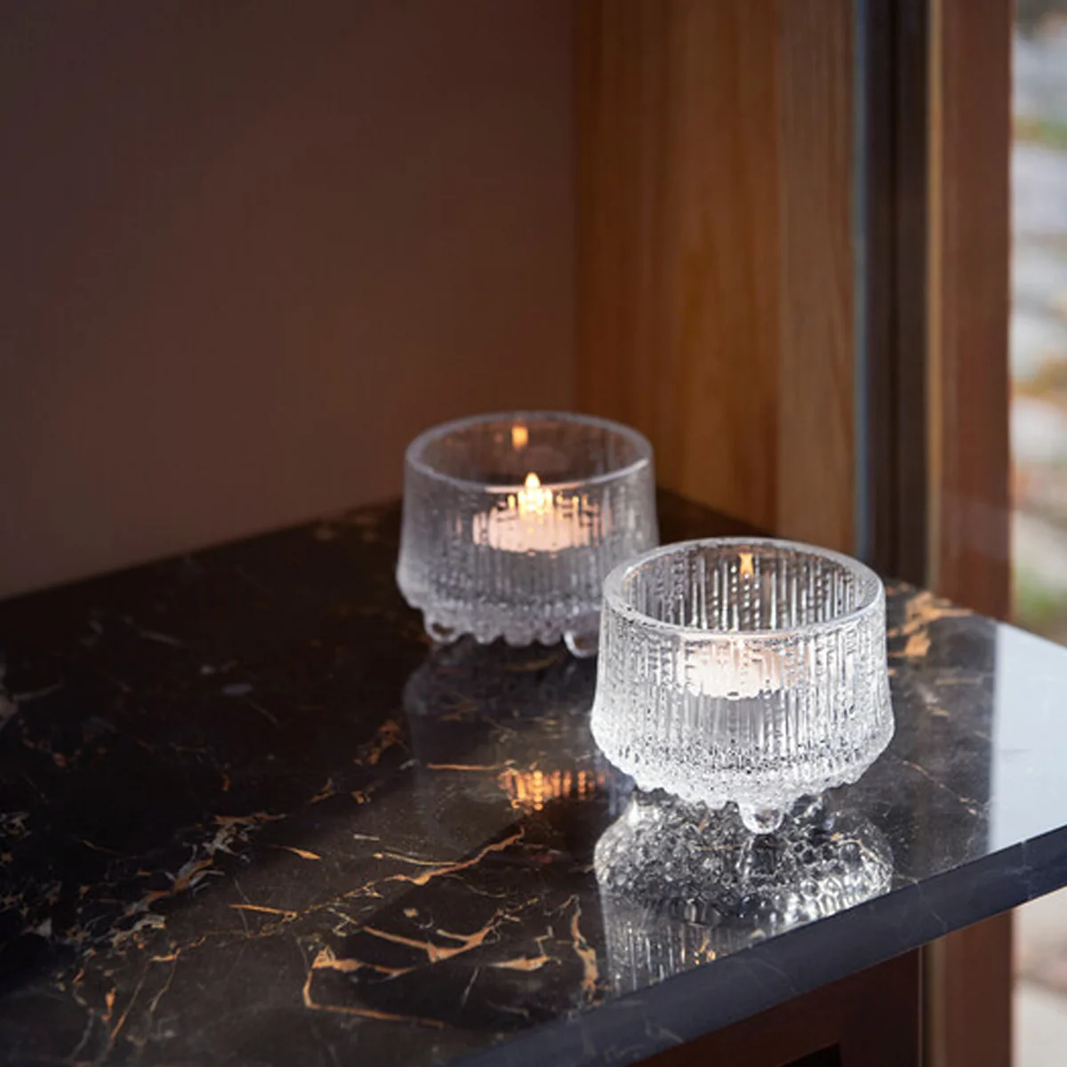 Disponibles en verre clair ou dépoli, les porte-bougies sont parfaits pour créer une atmosphère familiale d'inspiration scandinave dans la maison. Par exemple, ils peuvent être placés sur un plateau de la table à manger ou sur une table d'appoint à côté du canapé.