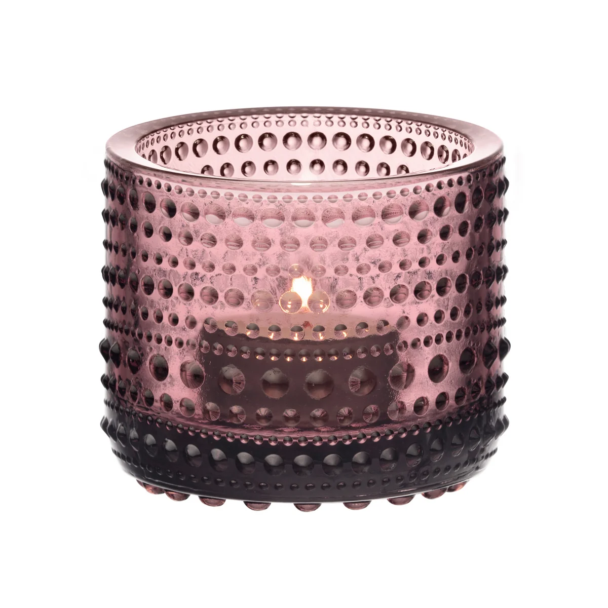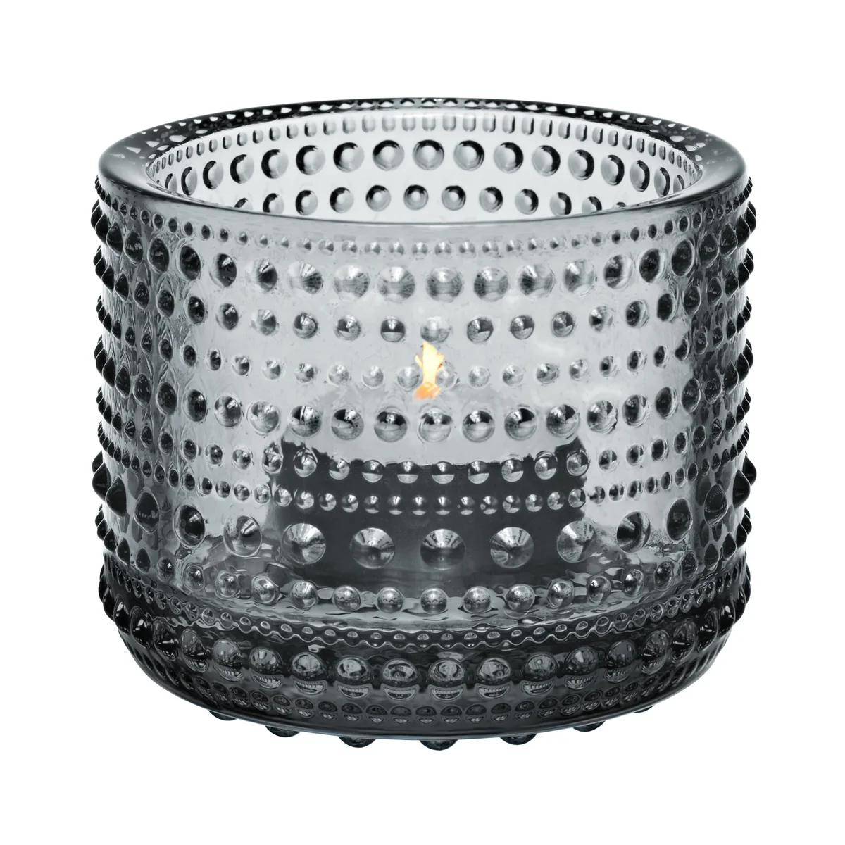 Dans les années 60, Oiva Toikka a essayé de trouver une méthode pour dissimuler les coutures du verre pressé. C'est ainsi qu'il eut l'idée de placer de petites gouttes de verre sur les coutures. Son expérience s'est transformée en un design entièrement nouveau, qui a été réédité par Iittala. Les Kastehelmi Votive s d'Oiva Toikka sont disponibles dans de nombreuses couleurs d'ambiance.
