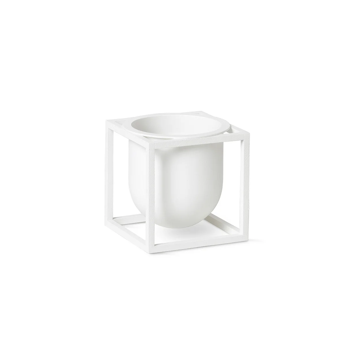 Le Flowerpot est fabriqué en métal peint par poudrage dans différentes couleurs. Le récipient rond est maintenu par un support géométrique anguleux, typique de la série Kubus. Sur la table d'appoint de la chambre à coucher ou de l'entrée, sur le sideboard du salon ou sur la table de jardin, le pot fait belle figure. Un insert maintient les fleurs et les plantes en position verticale. Avec un support mural adapté, vendu séparément, le Flowerpot peut également être fixé au mur.