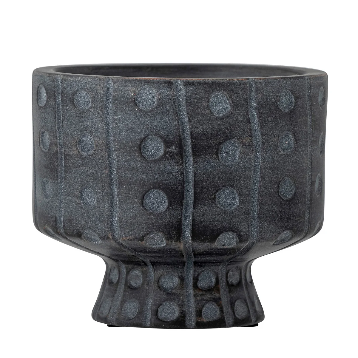 Le pot de fleurs Rane de Bloomingville est fabriqué en céramique avec une surface moderne et mate. Le pot de fleurs est décoré d'un beau motif de points gaufrés qui s'étend du fond jusqu'au sommet. Sa couleur gris foncé contrastera avec chaque fleur ou plante qui s'y trouve.