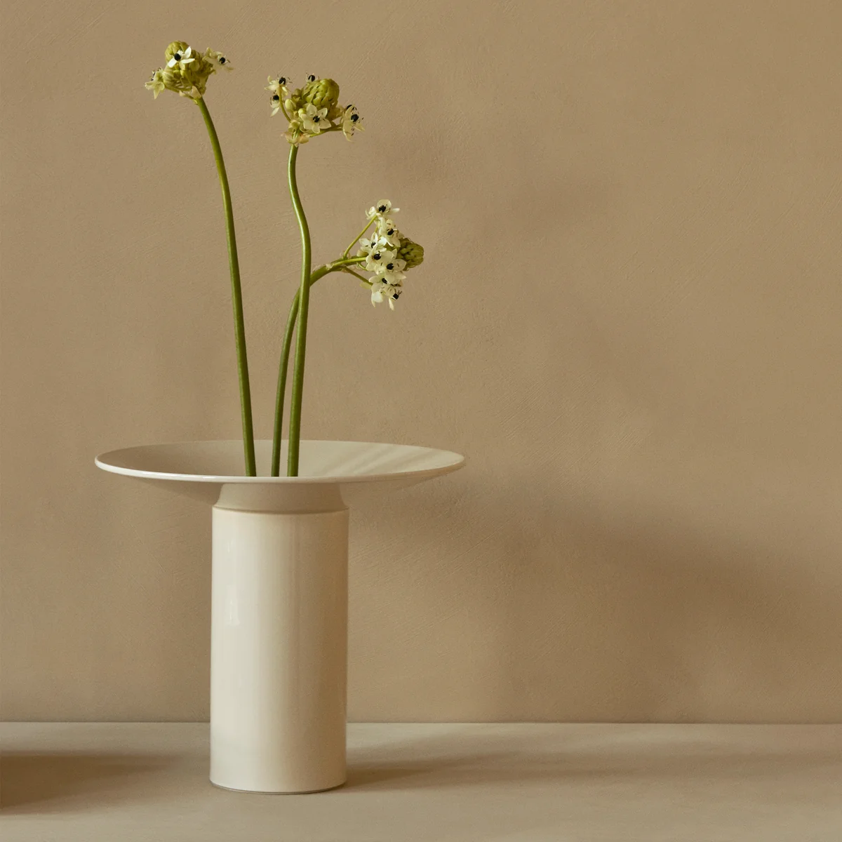 Le modèle Hana vase de Krøyer-Sætter-Lassen pour Audo séduit par son design artistique. Le vase en céramique peut être utilisé seul ou en combinaison avec des bouquets de fleurs luxuriants. Le couvercle en céramique peut être utilisé pour des fleurs et des branches individuelles ou être mis de côté. Hana Le vase est disponible en différentes tailles et versions.