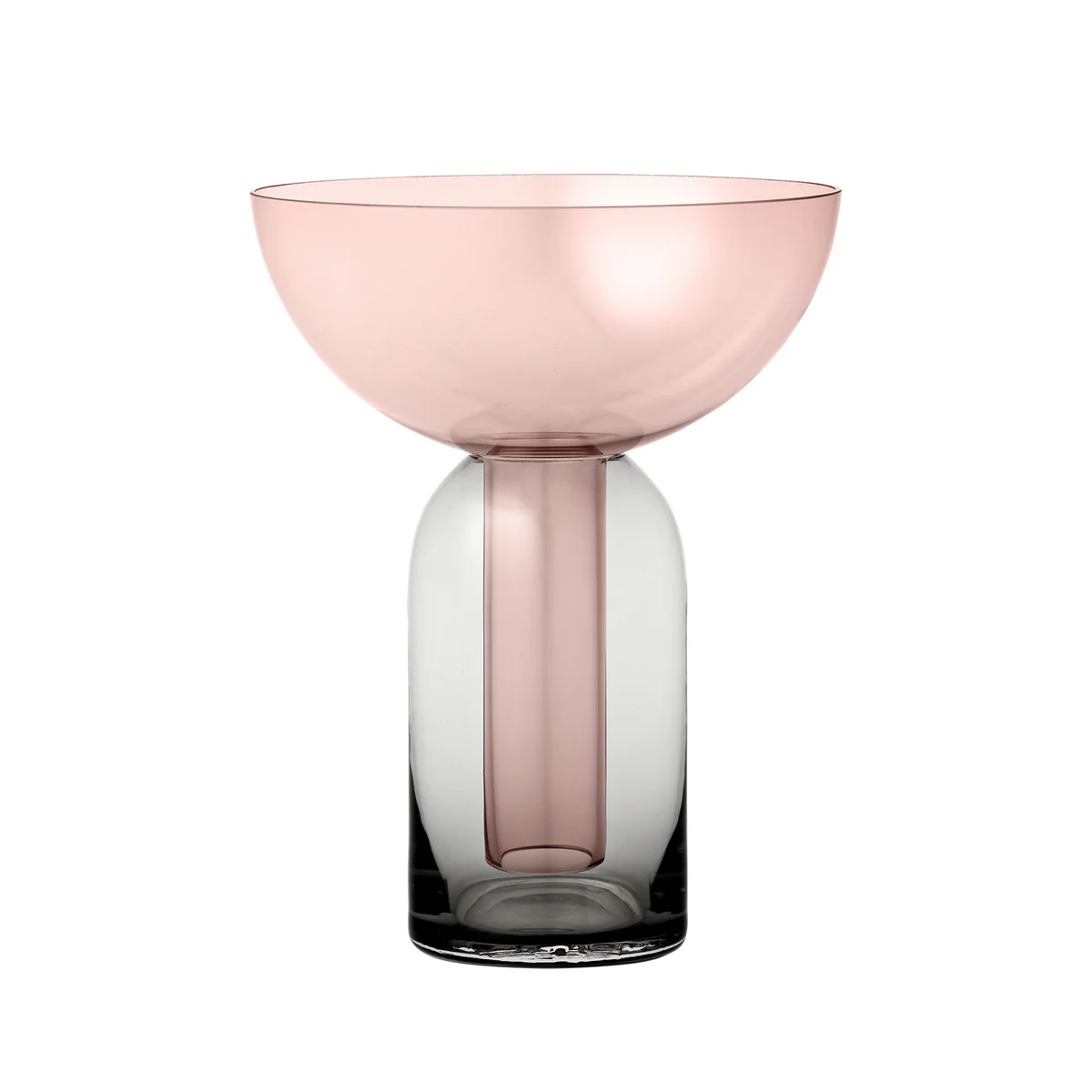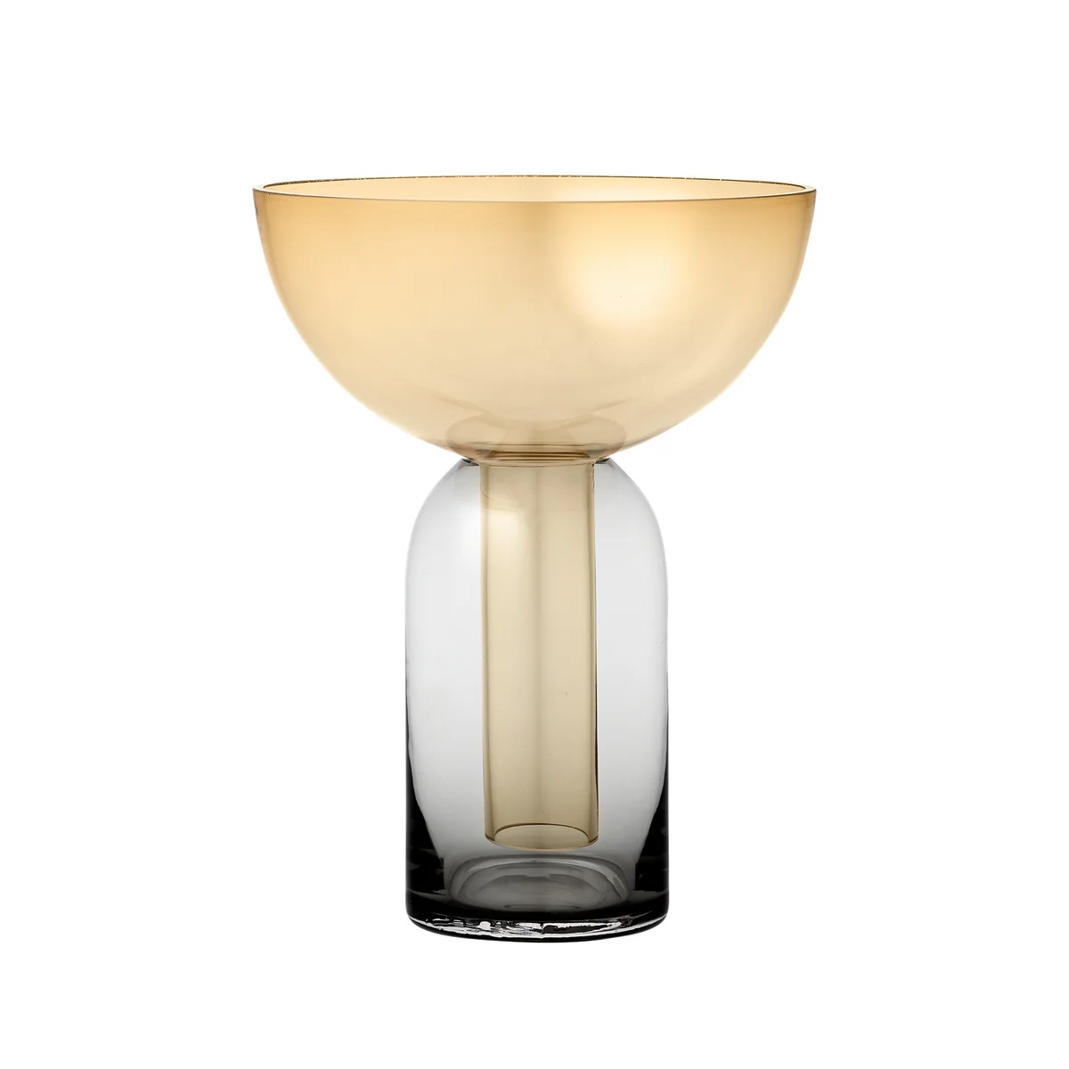 Le Torus Vase by AYTM se caractérise par son optique spéciale verre dans verre, qui attire l'attention. Alors que le verre de base transparent a la forme simple d'un vase classique, le verre coloré rappelle un entonnoir, avec une large ouverture. Ces deux éléments forment un lien harmonieux entre eux et se fondent en une seule unité.