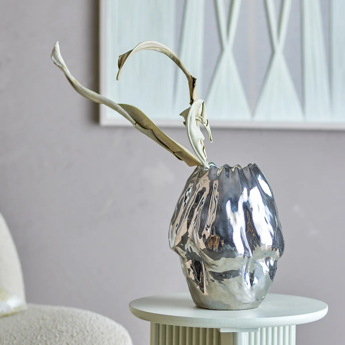 Le Bobby de Bloomingville allie élégance moderne et charme artisanal. Fabriqué en faïence robuste et recouvert d'un émail brillant de couleur argentée, il reflète la lumière avec style et crée ainsi des accents captivants dans chaque pièce. Sa forme organique souligne son caractère artistique, tandis que les variations naturelles de couleurs font de chaque vase une pièce unique.