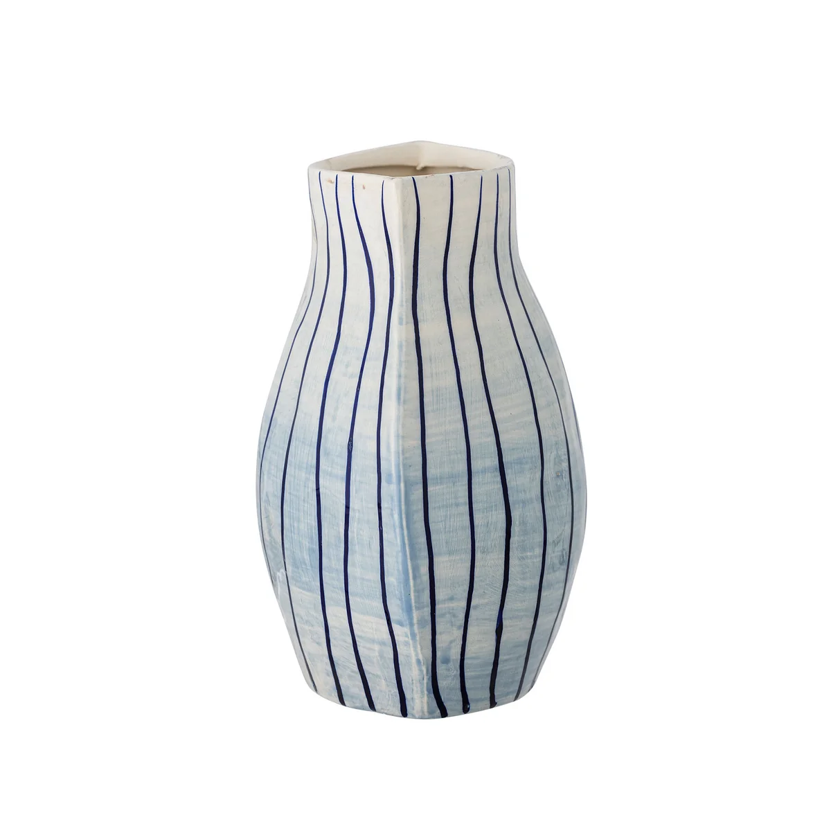Le vase Esra se distingue par son design intemporel avec des rayures bleues peintes à la main sur de la faïence de qualité. Chaque vase est unique grâce aux détails faits à la main et apporte une touche individuelle à l'aménagement. Que ce soit avec des fleurs fraîches sur la table de la salle à manger ou comme élément décoratif sur une étagère, ce vase confère à chaque pièce un rayonnement plein de style.