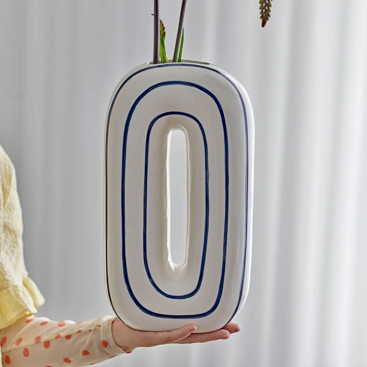 Le vase Mae allie design intemporel et finesse artisanale. Fabriqué en céramique de haute qualité, il est décoré de rayures bleues peintes à la main qui confèrent à chaque vase une note individuelle. Que ce soit pour des fleurs fraîches ou comme pièce de décoration à part entière, ce vase apporte une touche de style dans chaque pièce à vivre.